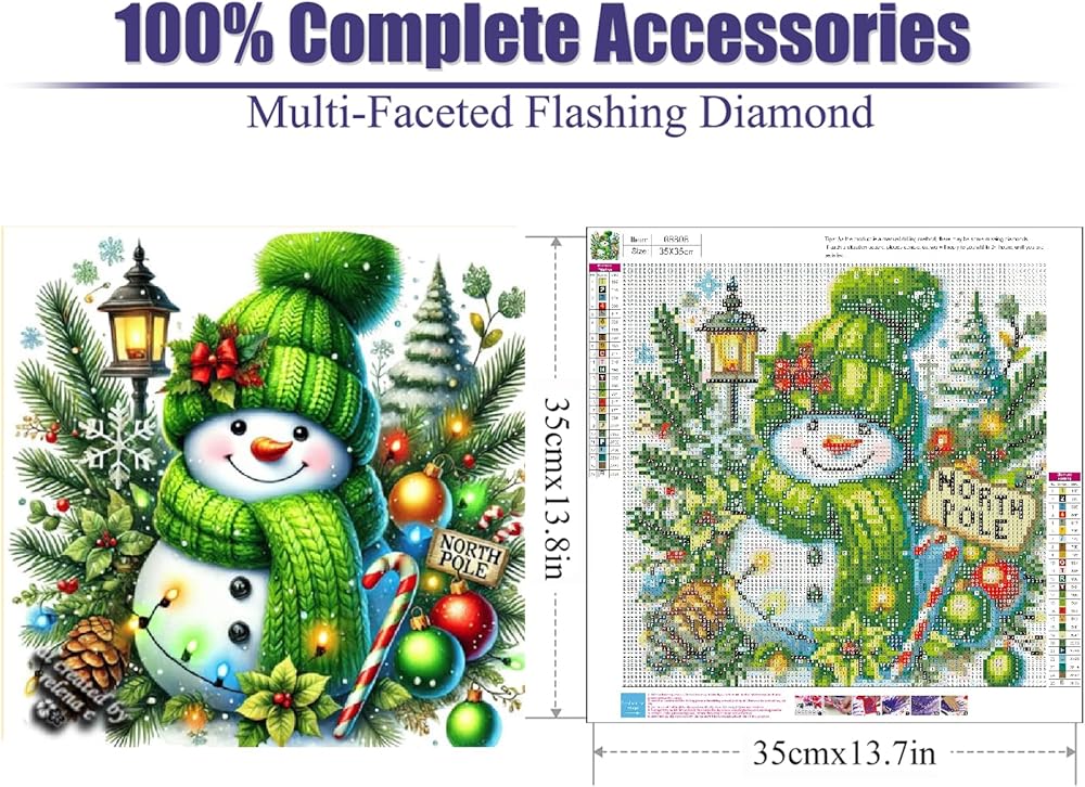 Christmas Diamond Painting Kits for Adults-5D Diamond Art Kits for Adults Beginner, DIY Snowman Full Drill Diamond Dots with Diamonds Picture Gem Art Crafts for Adult Decor 14x14 in