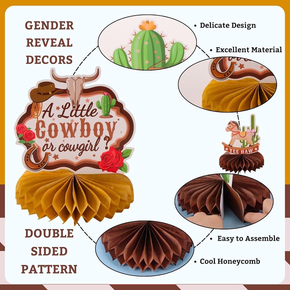 Excellent Party Decorations: Whether you're hosting 1st birthday party, one year old wild west theme party or baby shower celebration party, our tabletop centerpieces are versatile accessories that will add an active touch to any party celebration. With their vibrant colors and unique design, they are sure to be a hit to your guests, which will create a memorable atmosphere for celebration