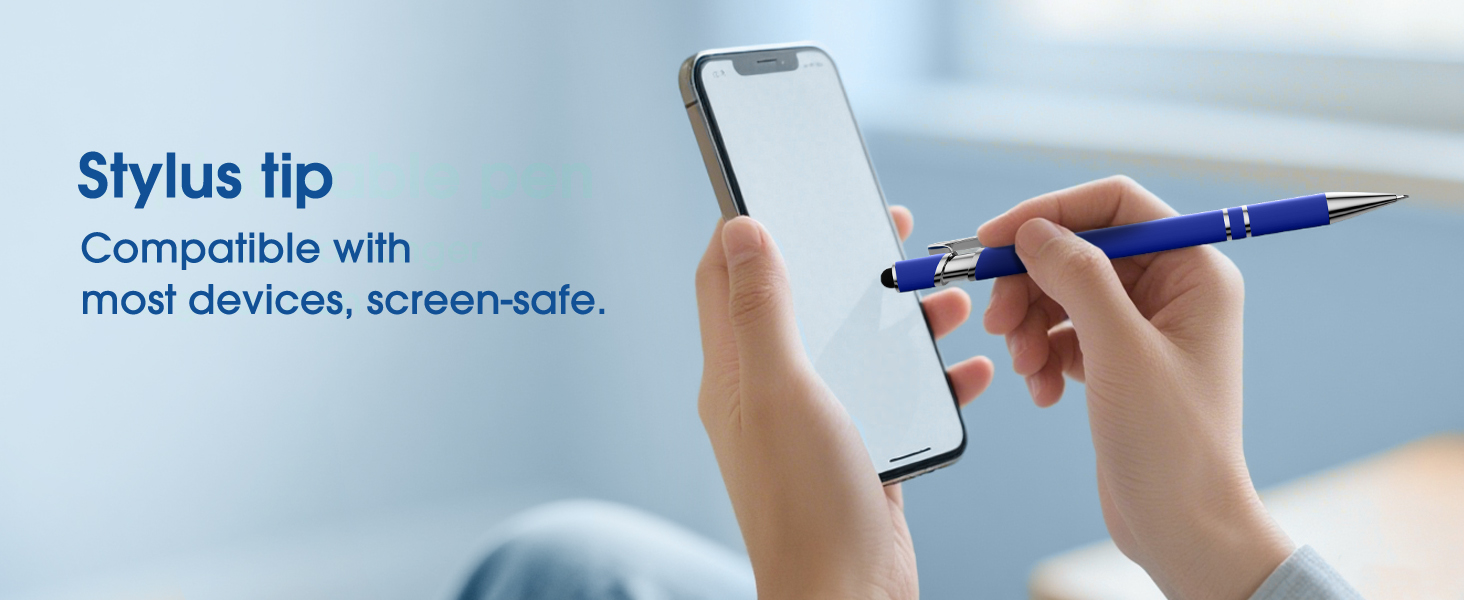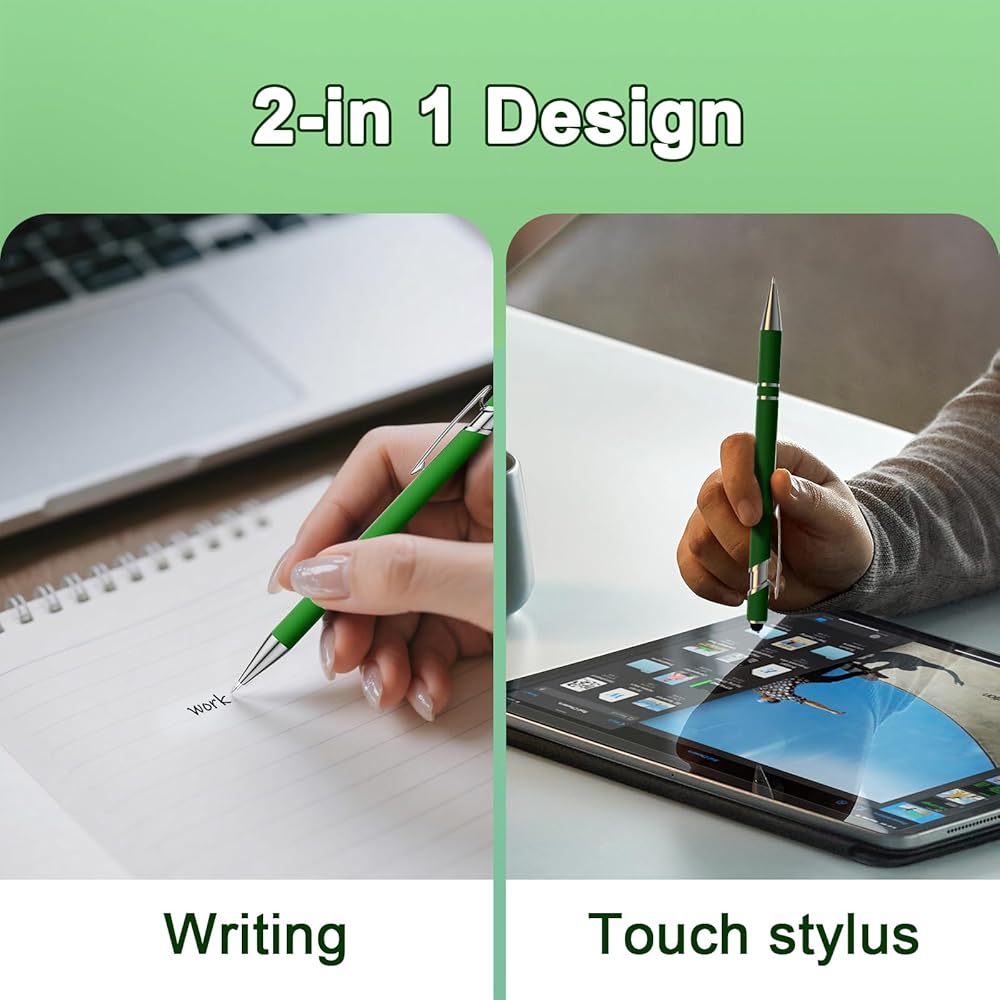 【Versatile 2-in-1 Design】 This ballpoint pen features a built-in stylus tip, perfect for writing on paper and navigating touchscreens on iPhones, iPads, tablets, and other devices—ideal for work, school, or daily multitasking.
