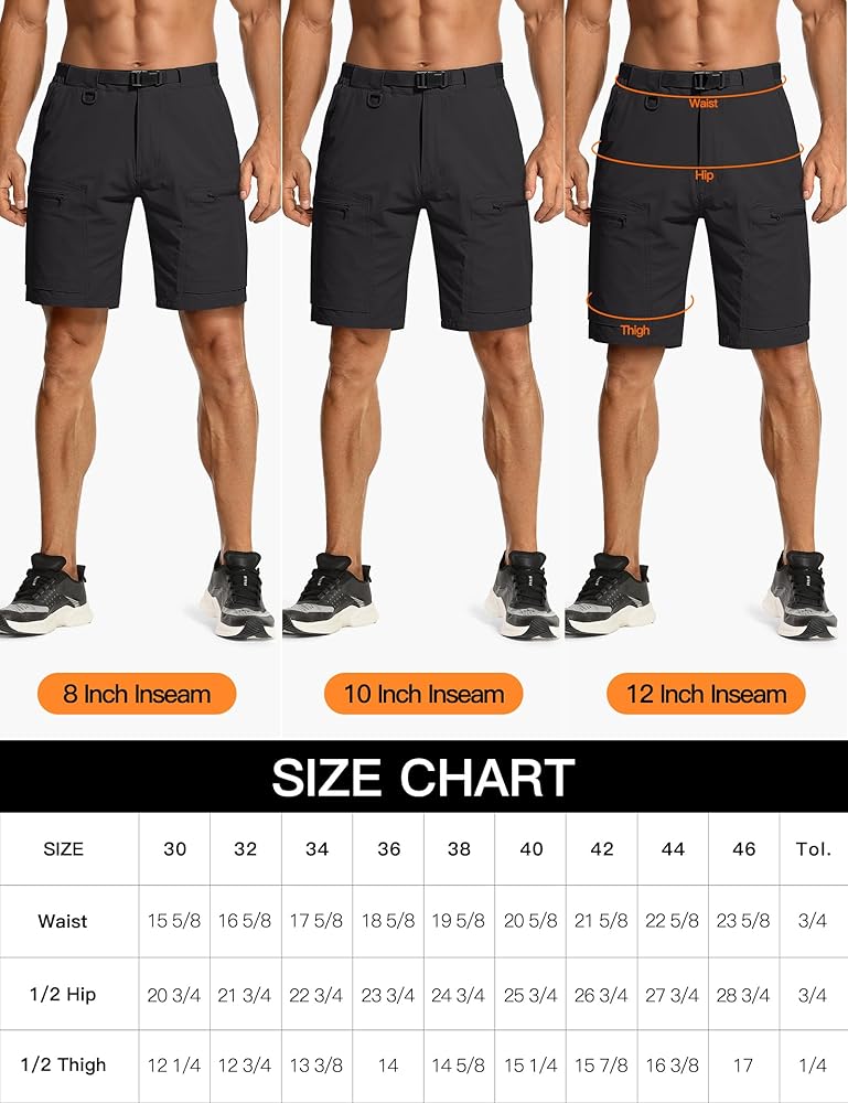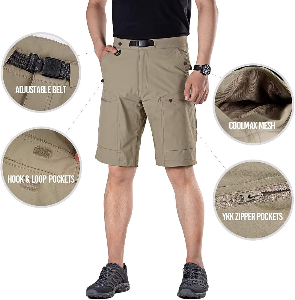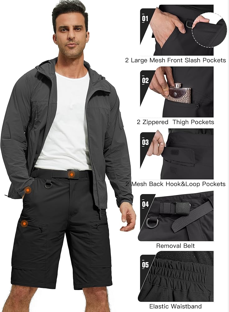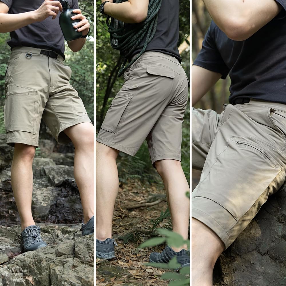 STRETCH WAISTBAND & BELT: The cargo shorts for men features an adjustable waistband with a removable belt, it can be customized to fit your body perfectly.You'll be able to move around freely without having to constantly adjust your shorts.