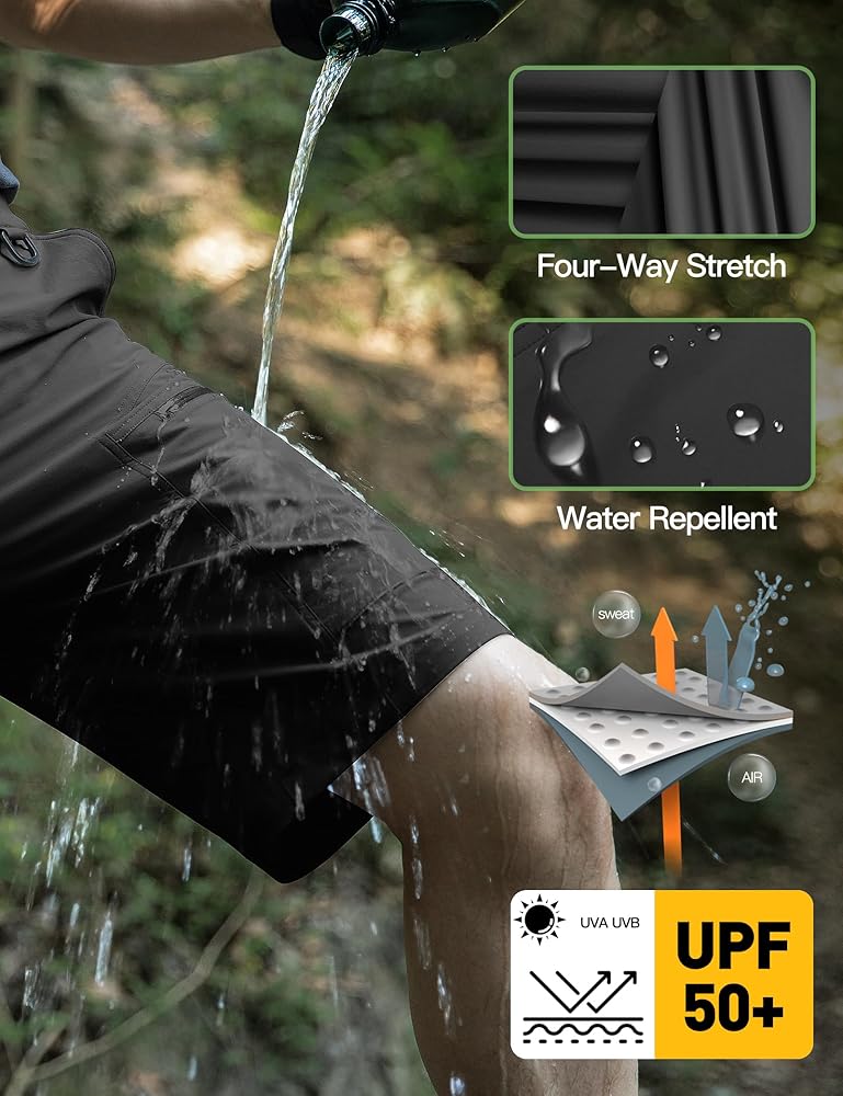 WATER RESISTANT & UPF 50+: The mens shorts casual are made from high performance wicking fabric with water repellent treatment, ensuring that you stay dry and comfortable in summer weather. UPF 50+ sun protection that helps block UVA and UVB rays.