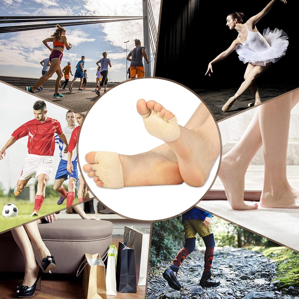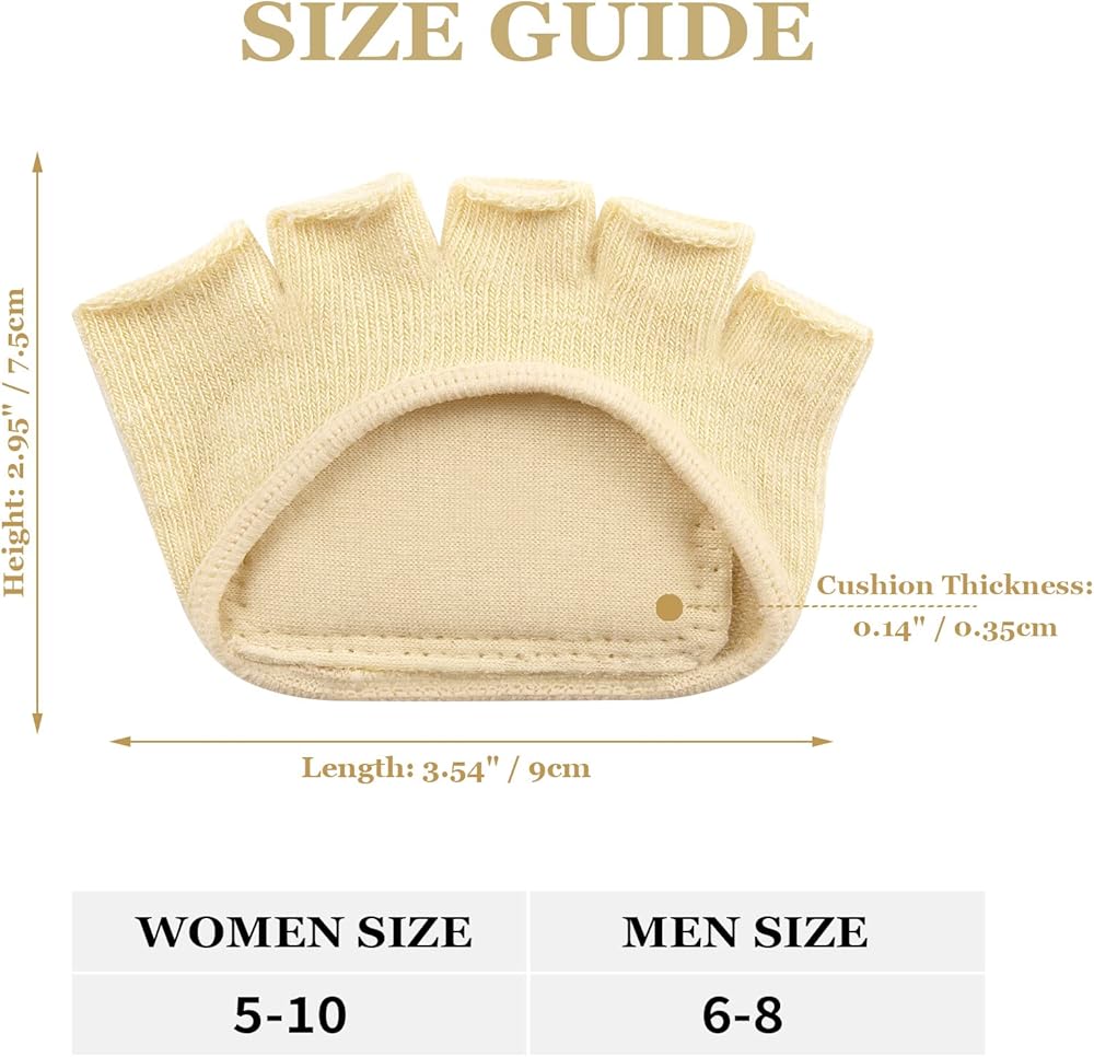 ☑️【UNISEX FIT】: Our KVMDAZ metatarsalgia dancer pads are made with high elasticity that was perfect for women size (5-10) and men size (6-8) to offer more comfort, support and reliability across the entire forefoot. Our half toe sleeve cushion are designed to be worn over your foot for better fit and protection to the bottom of your feet.