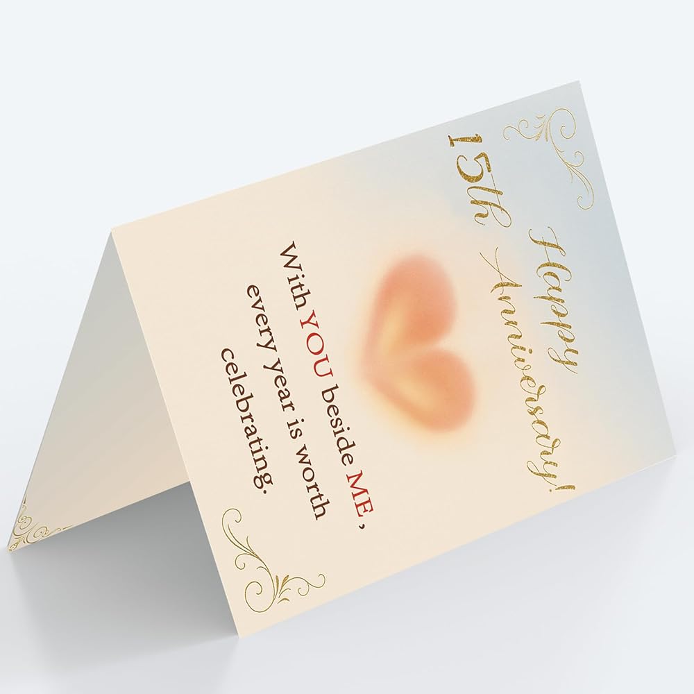 Express your love and appreciation with this beautifully designed anniversary card, perfect for celebrating special moments with your spouse. The card features a thoughtful double-sided layout that provides ample space for writing your heartfelt messages and personal blessings. Measuring 8.0 x 5.3 inches when folded, this greeting card comes complete with a matching envelope and decorative sticker. Whether for your husband or wife, this anniversary card serves as a meaningful way to commemorate your special day together. The complete package includes one card, one envelope, and one sticker, making it ready to present as a touching anniversary gesture.