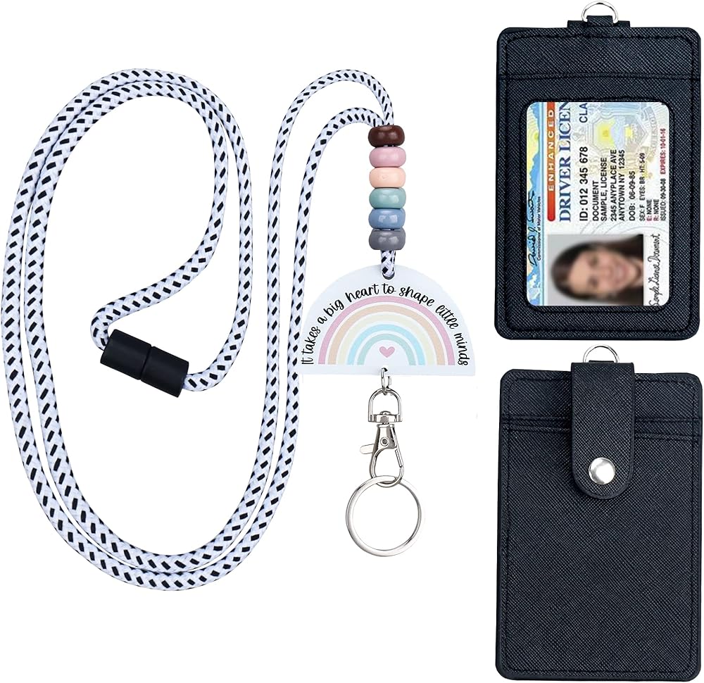 ABAMERICA Teacher Lanyards for Id Badges and Keys, Cute Beaded Lanyards for Women with Keychain and Leather Holder of 3 Card Slots, Comfortable, Detachable, Unique Designs from USA