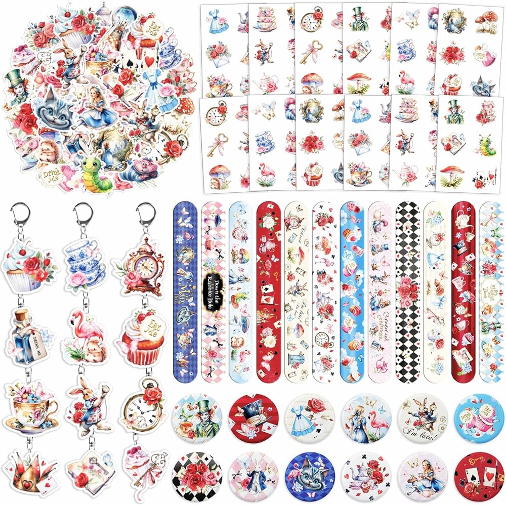 Step into a world of whimsy and wonder with this 98-piece Alice in Wonderland Party Favor Set! Featuring vibrant artwork, charming characters, and playful themes, this bundle brings the magic of the Mad Hatter's tea party to life. Whether you're hosting a birthday bash or just love Alice-themed fun, this set includes everything you need to make your event unforgettable.