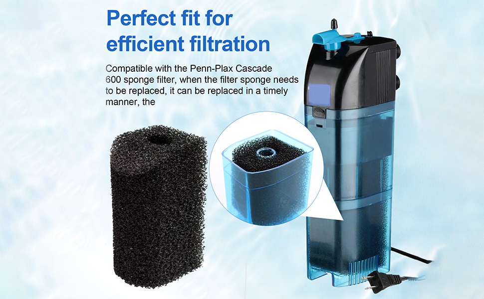 【Perfect fit, high efficiency filtration】 Compatible with Penn-Plax Cascade 600 sponge filters, which can be replaced when you need to replace the filter sponge, ensuring that the water flow passes through evenly and improving filtration efficiency.