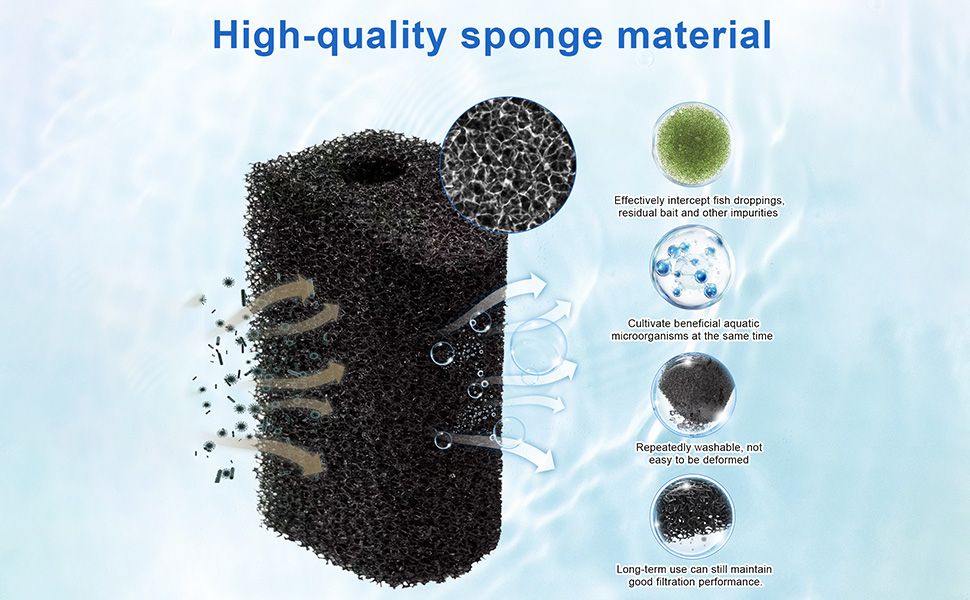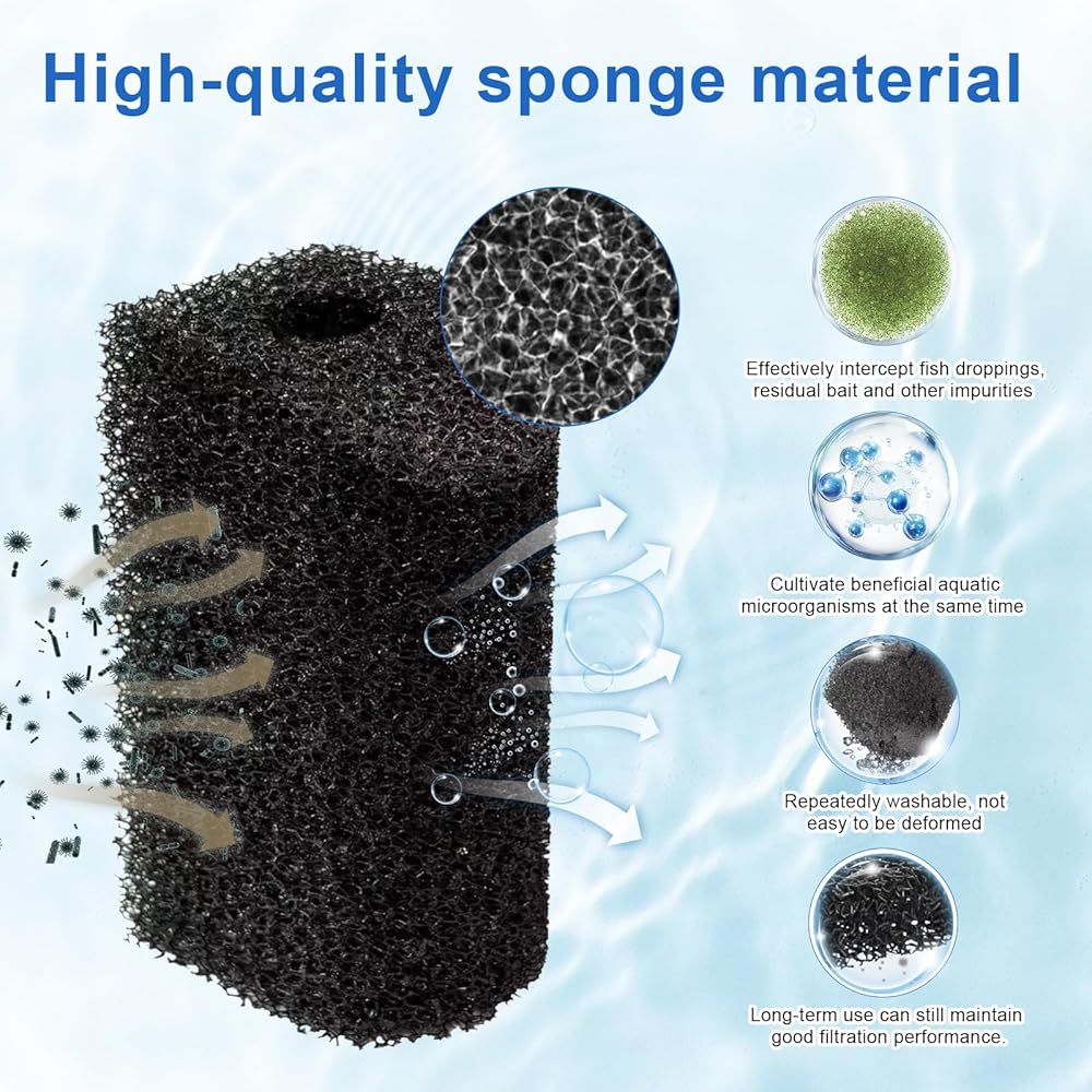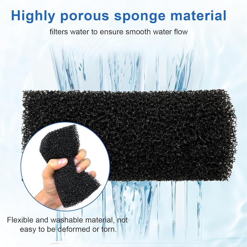 【High quality sponge material】 Adopts high porosity biochemical sponge, effectively intercepts fish poop, bait residue and other impurities, while cultivating beneficial aquatic microorganisms. Cascade 600 filter sponge can be washed repeatedly, not easy to deform, and still maintains good filtration performance in long-term use.