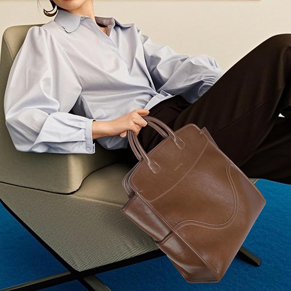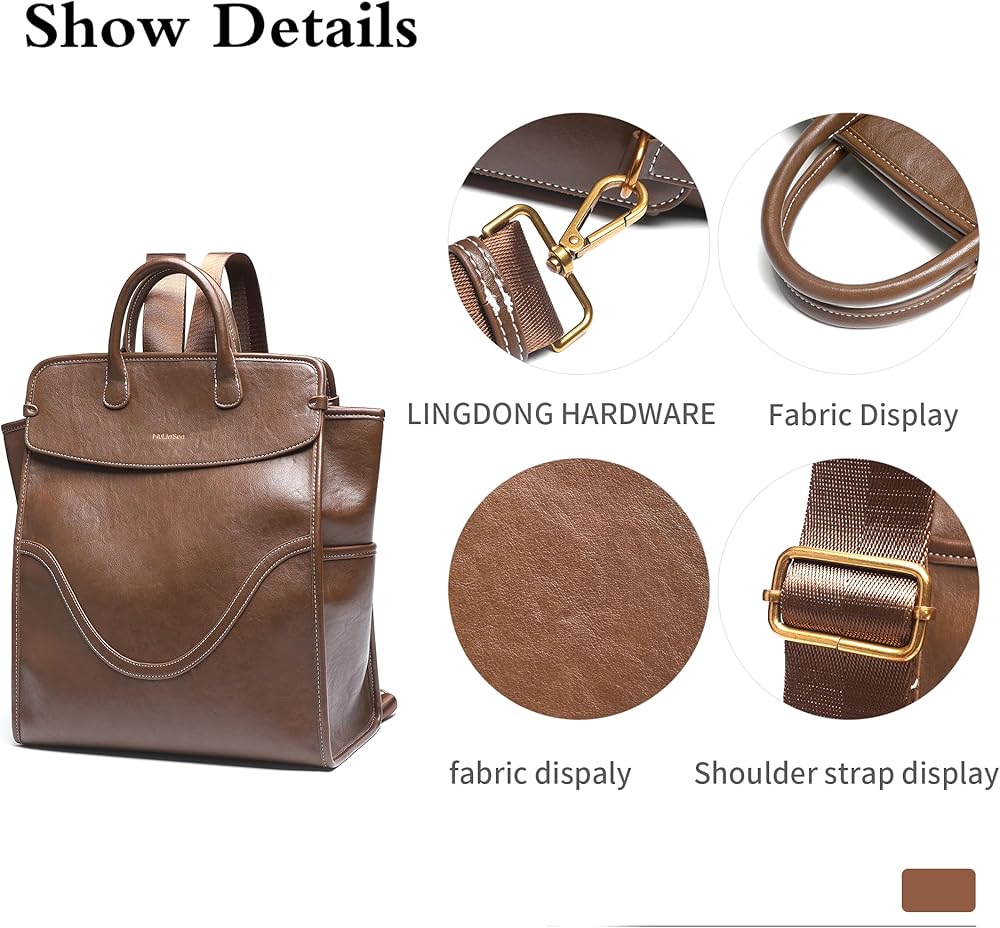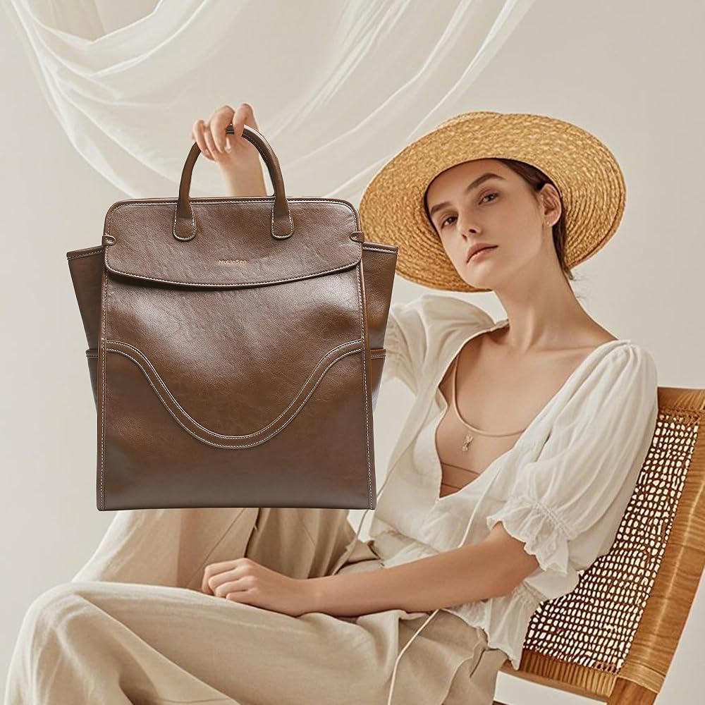 Medium Laptop Backpack Purse for Women and Men PU Leather Anti-theft Fashion Large Capacity Travel Casual Rucksack Convertible Business Computer Bags 240N Brown