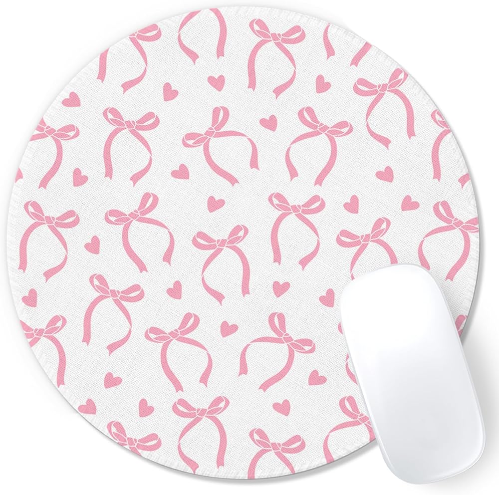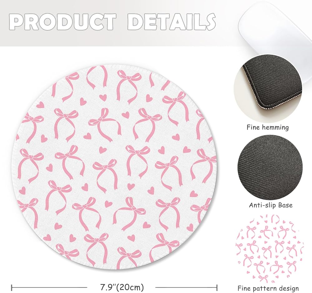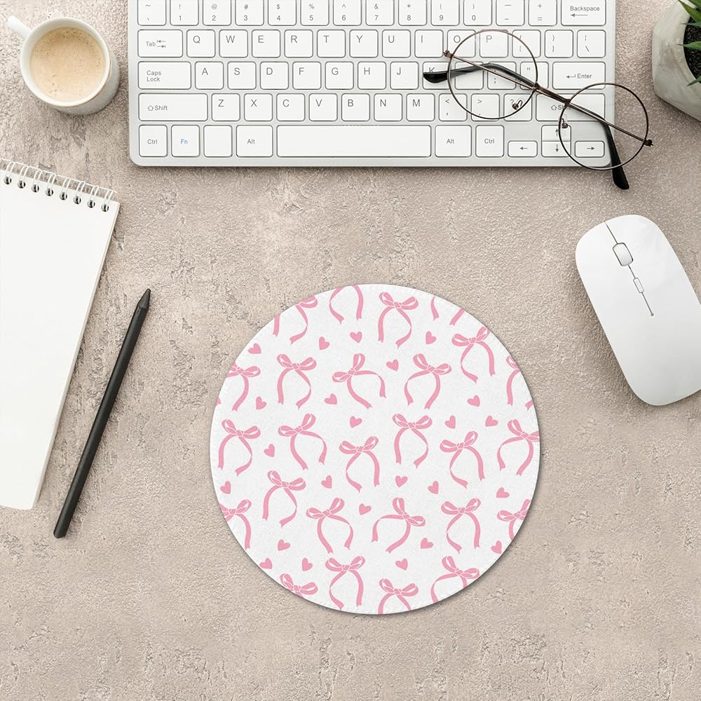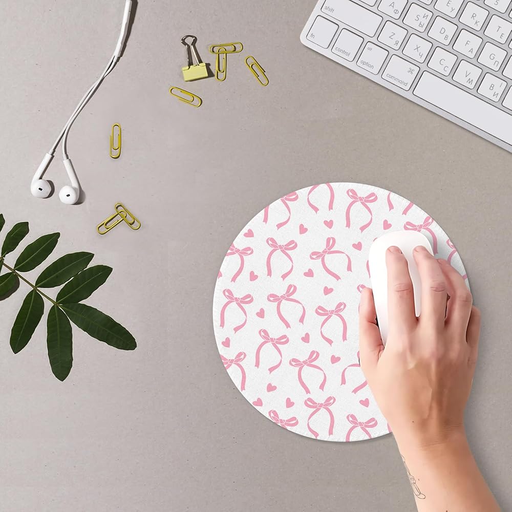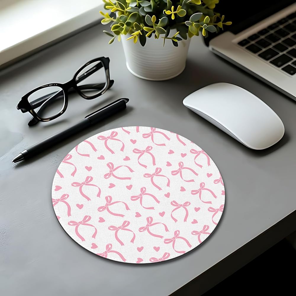 Coquette Pink Bow Mouse Pad, Coquette Girly Pink Bows Ribbon Mousepad Mouse Mat with Non-Slip Rubber Base for Home Office Desk Accessories, Girly Office Supplies, 7.9x7.9 Inch