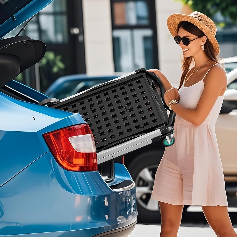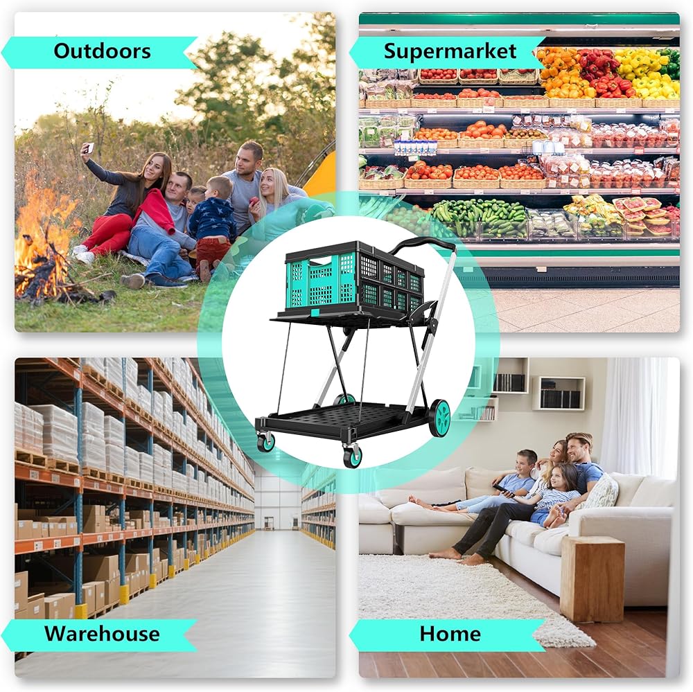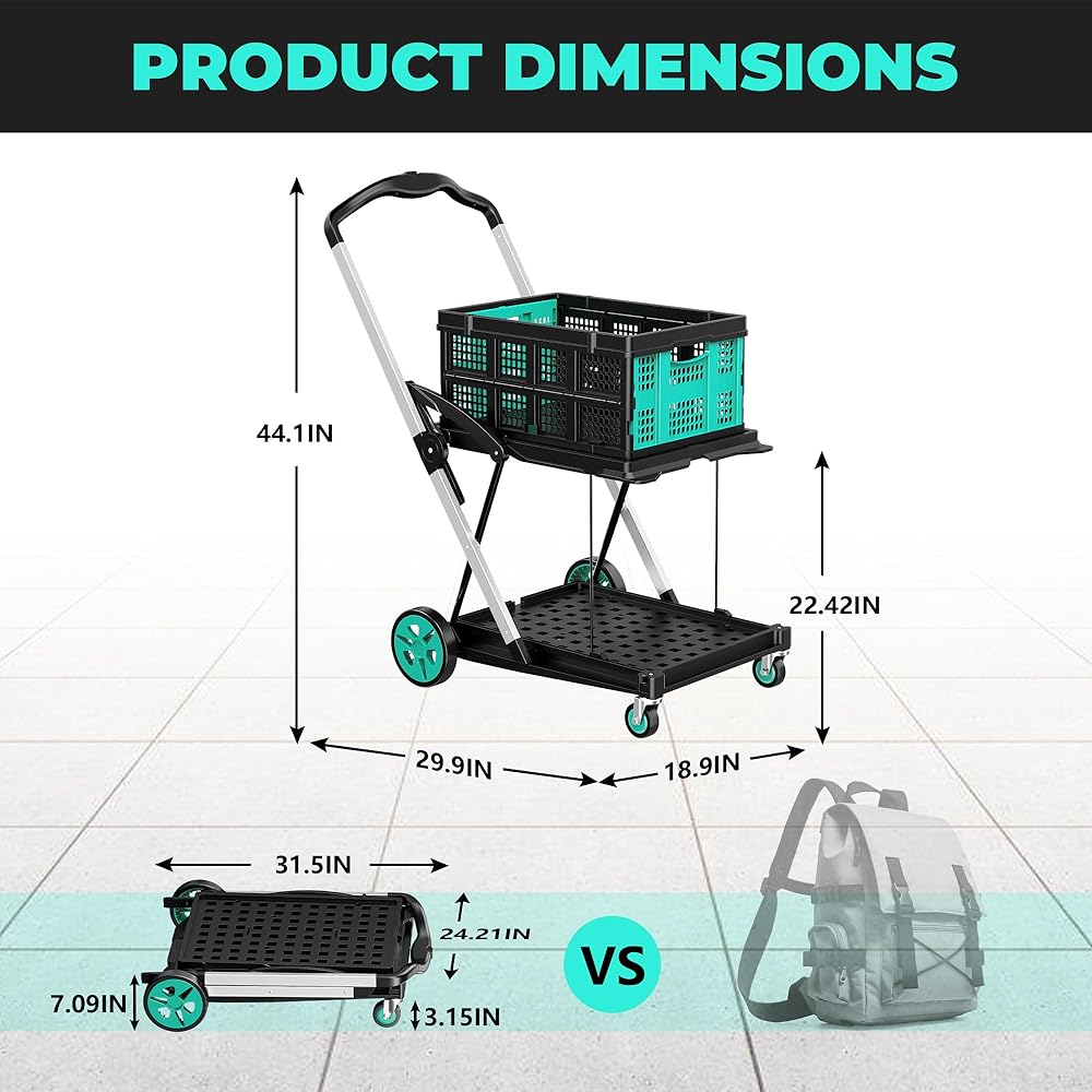 【Lightweight】:Collapsible shopping cart with wheels can be transformed into a variety of forms to meet individual needs, and the portable folding shopping cart is lightweight, only weights 25 lbs, it's effortless for a woman or elderly person to drag it around.