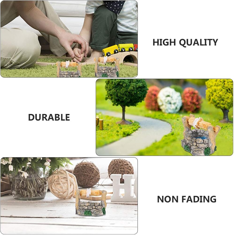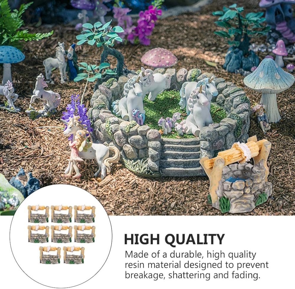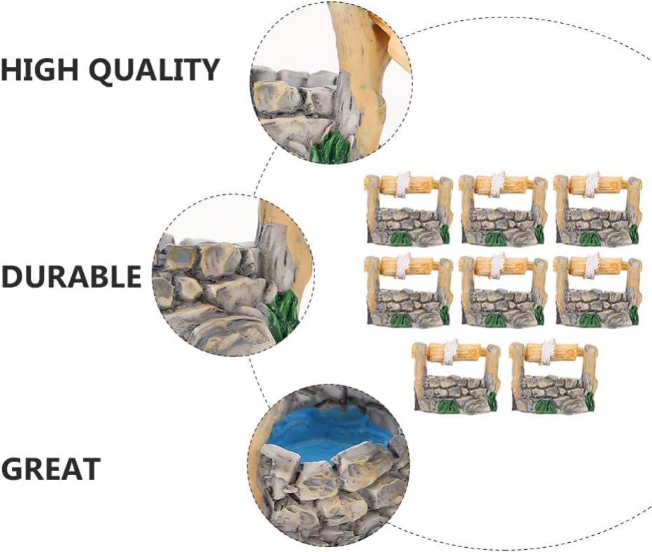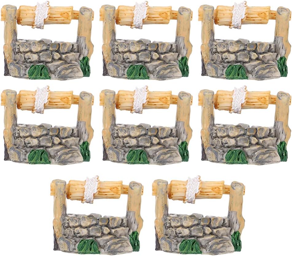 BESPORTBLE Miniature Water Well Figurine: 8Pcs Resin Fairy Garden Accessories, Tiny Water Well Micro Landscape Ornaments Kit for DIY Craft Dollhouse Decorative Accessory