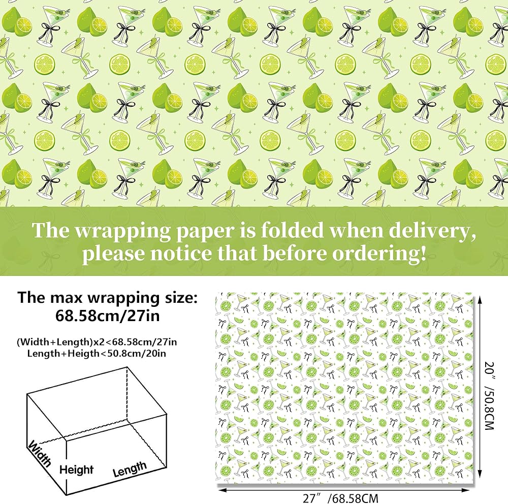 🍹🍹【Premium Material】- Our martini patterns wrapping paper is made of finest quality paper, safe and recyclable, sturdy and durable, not easy to fade or tear, great embellishment for gift wrapping and holiday and daily decor.