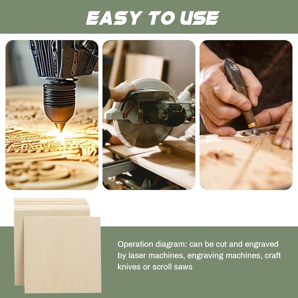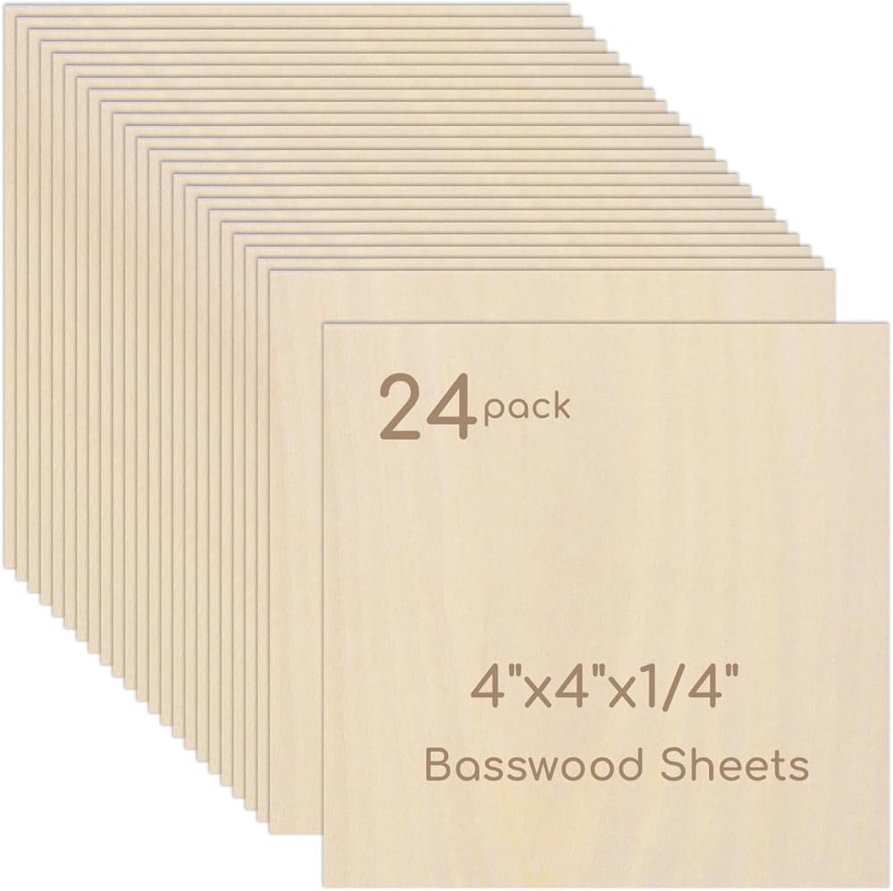 【BASSWOOD SHEETS】You will receive 24 pieces unfinished plywood sheets, measuring 4" x 4" with a thickness of 1/4";We offer plywood in a variety of sizes and quantities to give you more options for your creativity. Please choose the right size and thickness according to your needs.