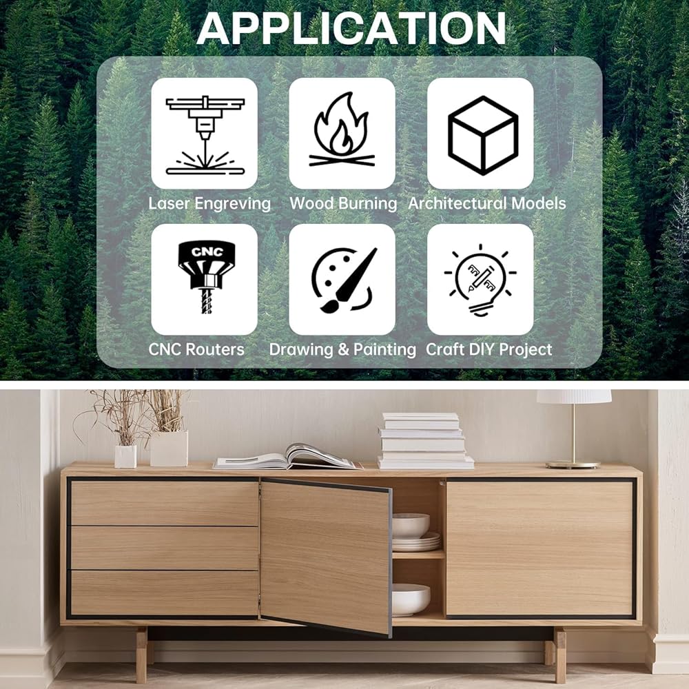 【EASY TO USE】: You can choose the right tool for the thickness, and a laser machine, engraving machine, craft knife or scroll saw can all be used for cutting or engraving. Our plywood is not only ideal for laser cutting and engraving, it is also perfect for a variety of DIY craft projects, and you can also color or paint it.