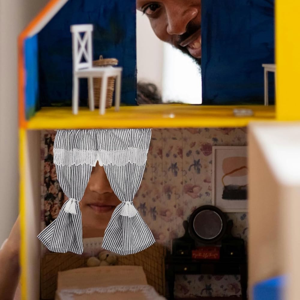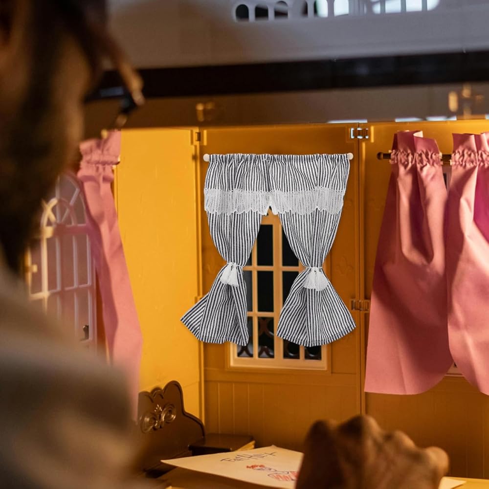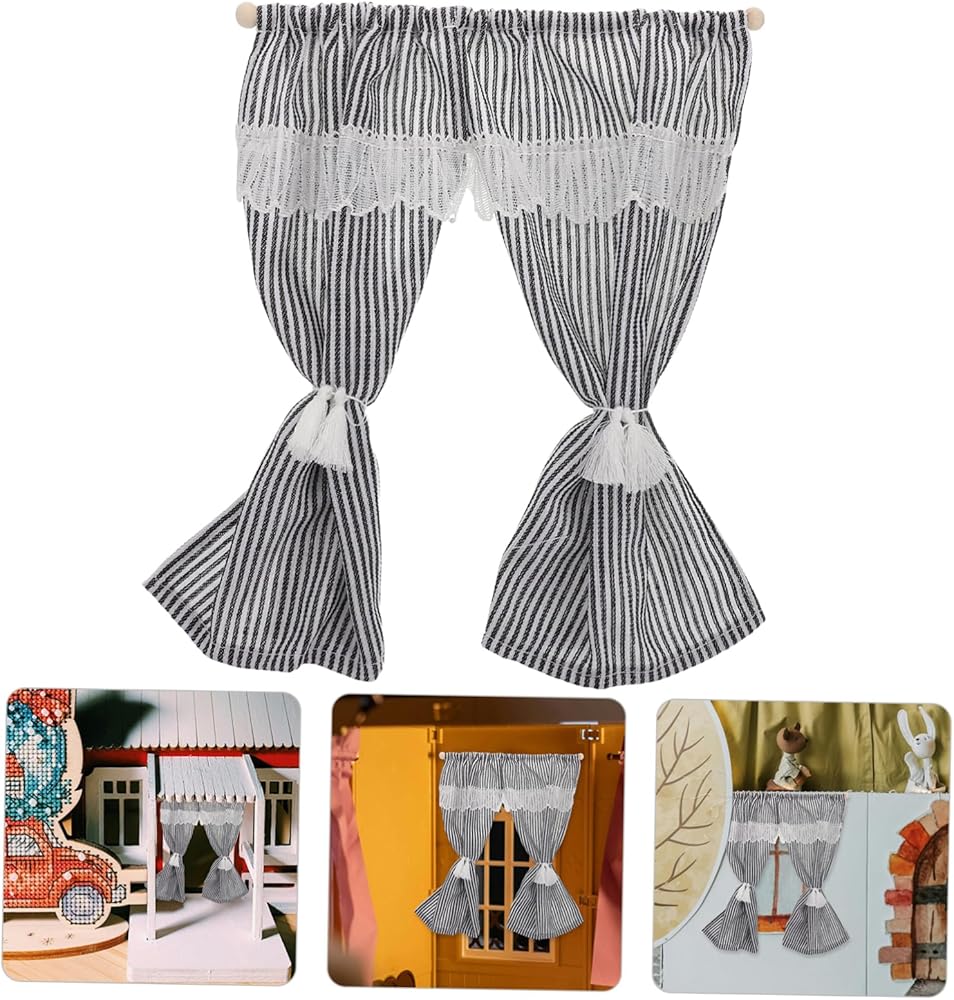 Toyvian Striped Miniature Curtains for Dollhouse Scale Small Drapes Elegant Design for Dollhouse Accessories and Home Decor Versatile Mini Window Treatments