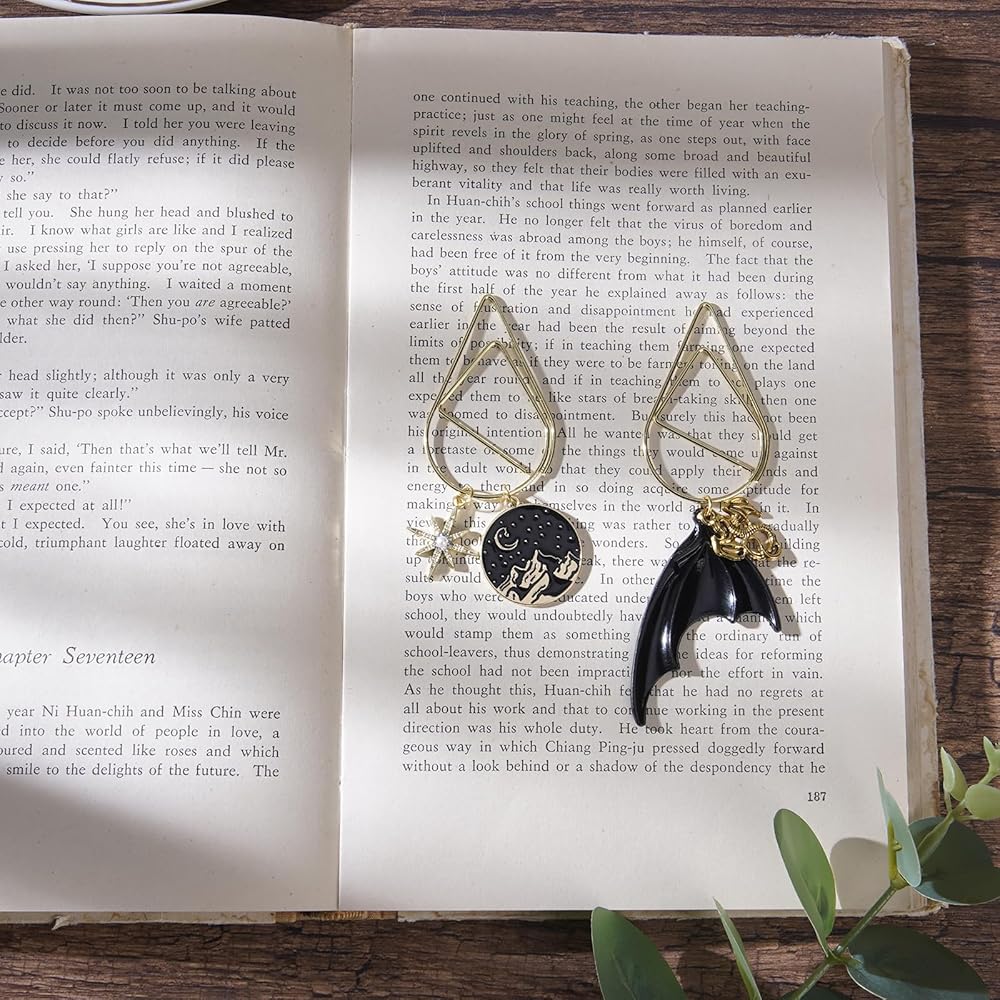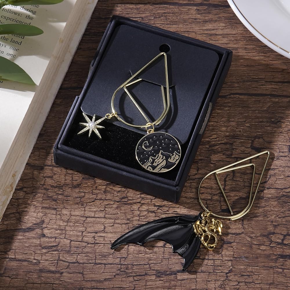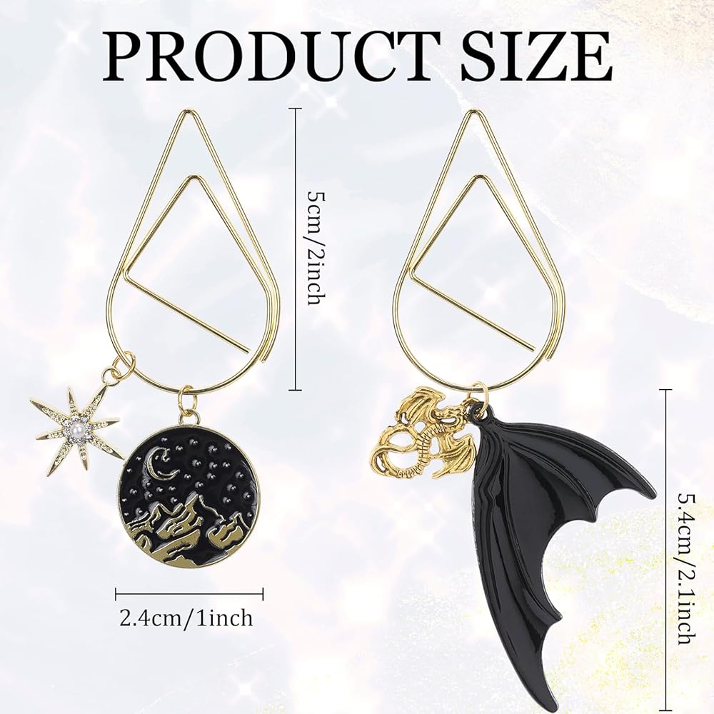 Charm Design: The bookmarks design feature a delicate four-winged dragon, a bright moon and a mountain bookmark, with a gorgeous gold finish. The details such as the black night sky and gold elements are carefully carved to make it more luxurious. A perfect gifts for readers who are fans of Helong and are obsessed with mysterious and magical aesthetics