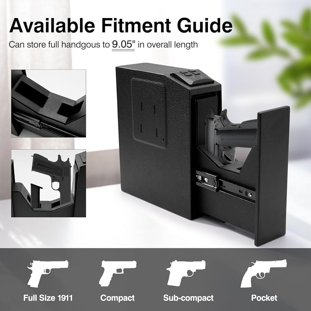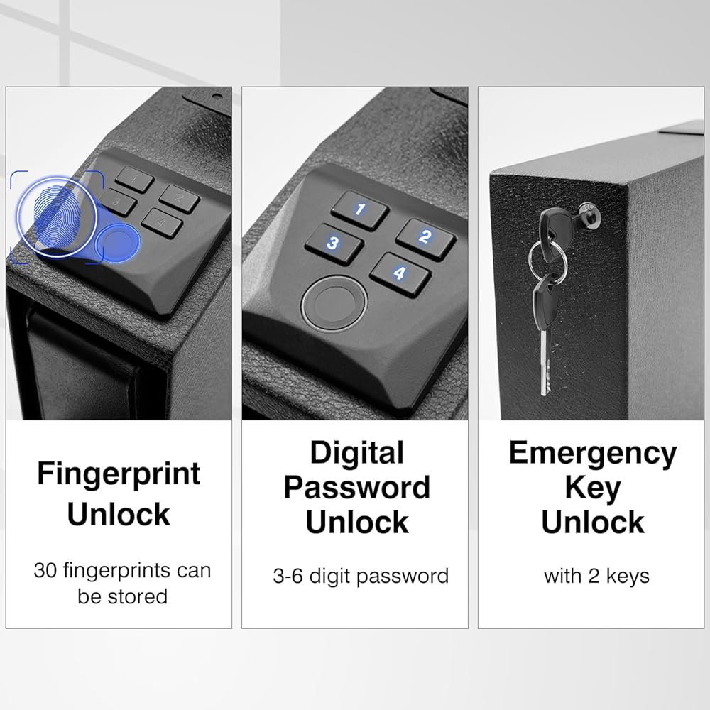 【Instant Access, Unmatched Convenience】 Our biometric gun safe slides out quickly with a passcode or fingerprint, giving you instant access to your pistol in seconds. This seamless operation ensures you're always prepared for any situation.