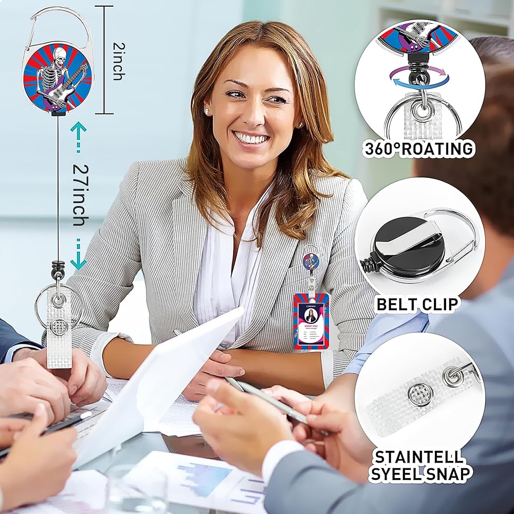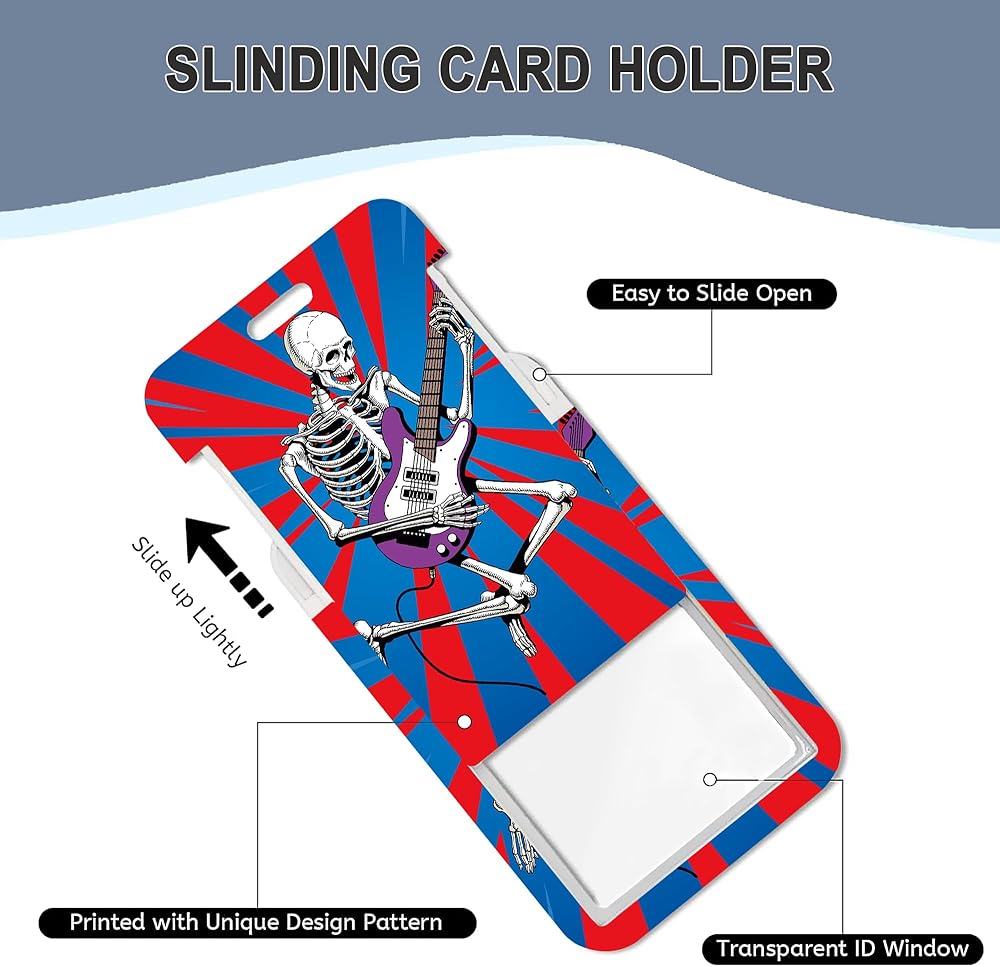 Badge Holder with Lanyard,Skeleton Rock Guitar Player ID Name Badge Card Holder with Lanyard,Badge Reel Heavy Duty with Carabiner Clip,Nurse Teacher Office Gifts