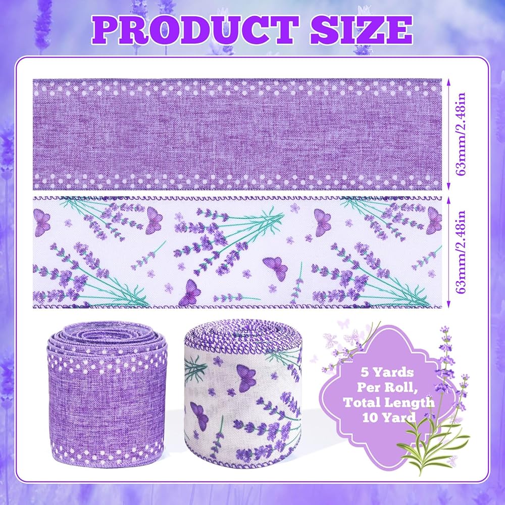 Our wired ribbon for crafts features delicate purple lavender blooms and whimsical butterfly accents, evoking a romantic, nature-inspired aesthetic.