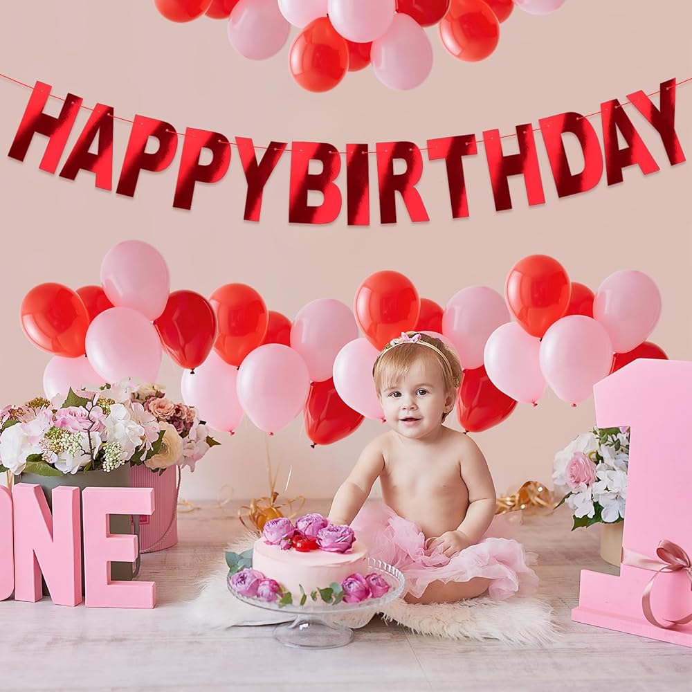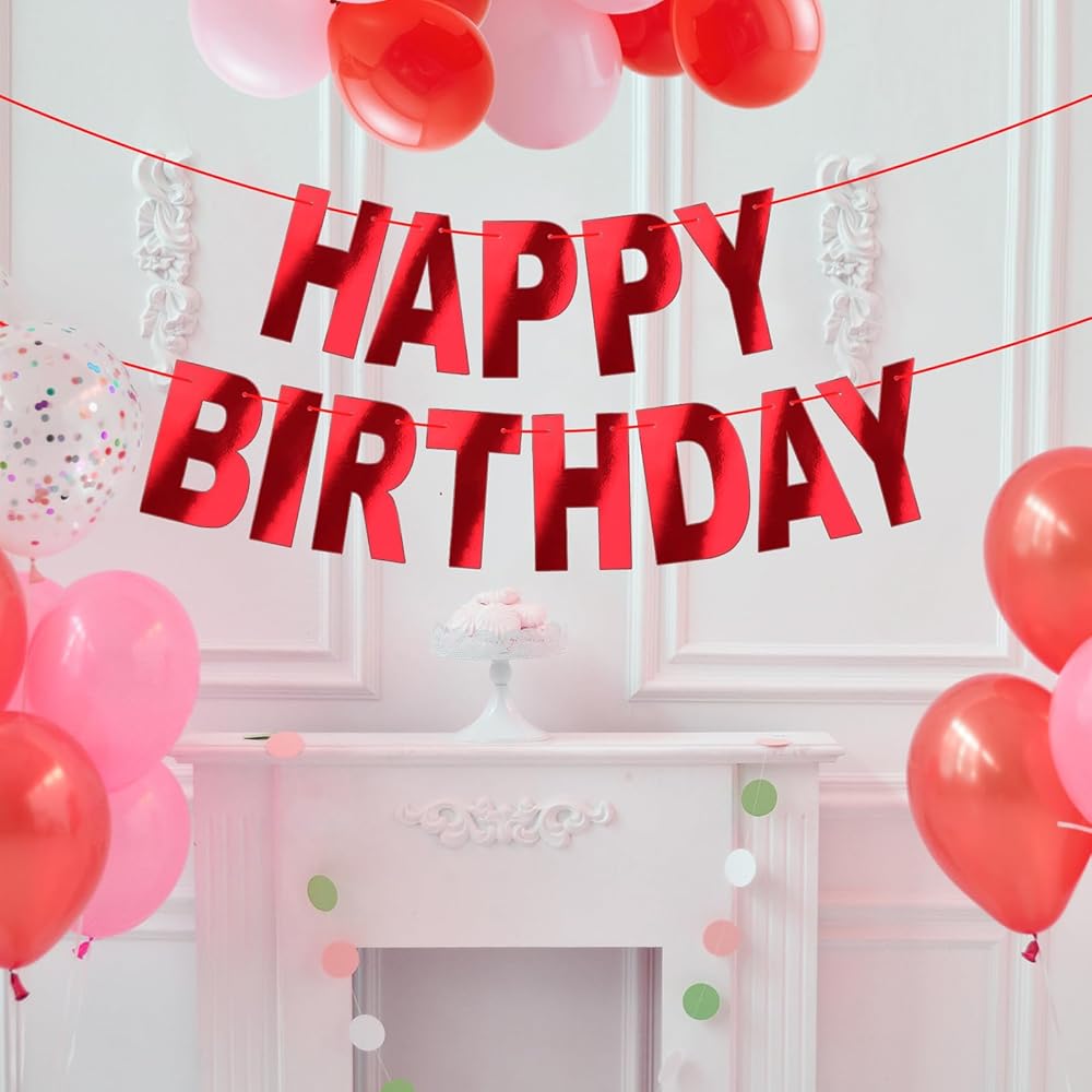 Red Happy Birthday Banner Sign Birthday Garland Wall Door Banners Flag for Women Men Boys Girls Party Backdrop Decorations, Personalized Letters Name Banners Hanging Decors Shiny