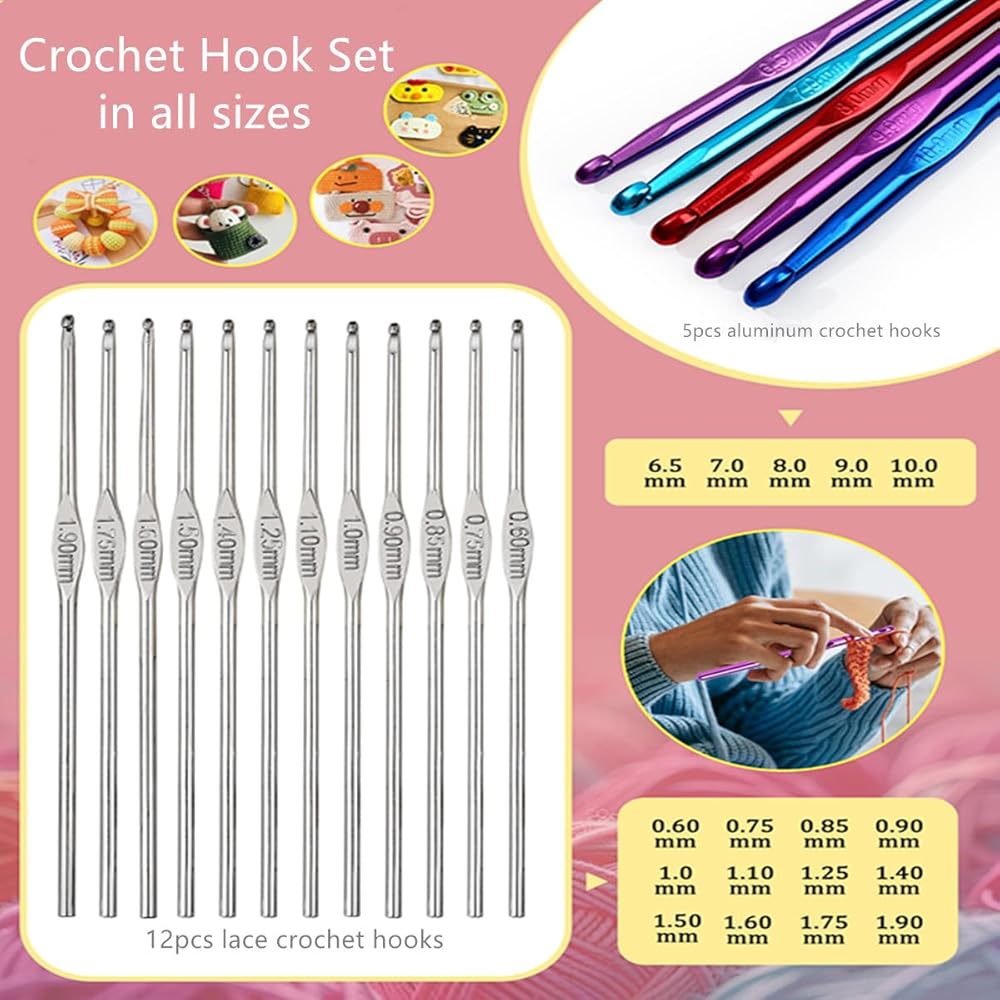 Smooth and Portable: The smooth crochet hook glides easily without burrs, making your crochet faster and more efficient. Includes a zippered pink pouch – your compact crochet hook kit for tidy storage and crafting on-the-go.It is the best choice for beginners' crochet kit
