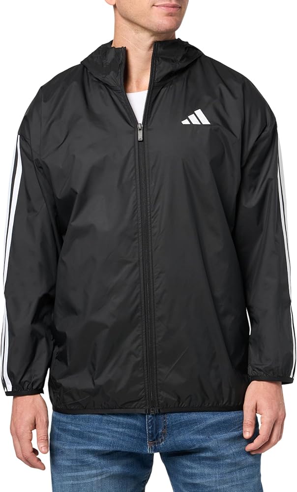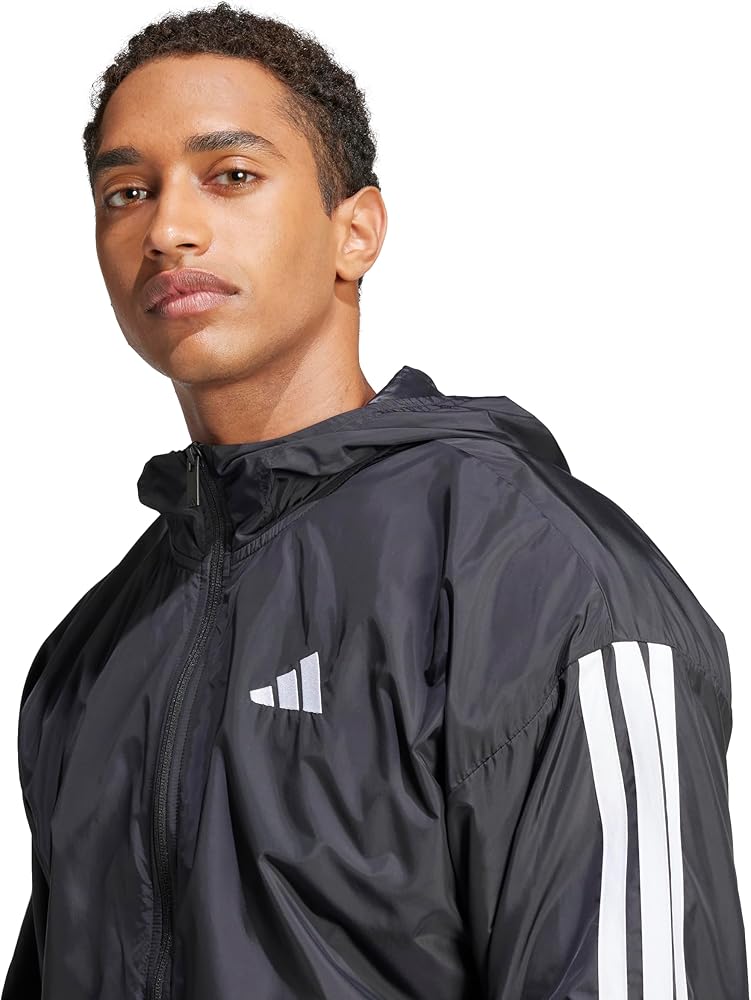 Gusty morning jog? Dinner at a windy outdoor beer garden? Don't sweat it. This men's adidas windbreaker handles it all thanks to its wind-resistant fabric, full zip and drawcord-adjustable hood. Side pockets hold your stuff.