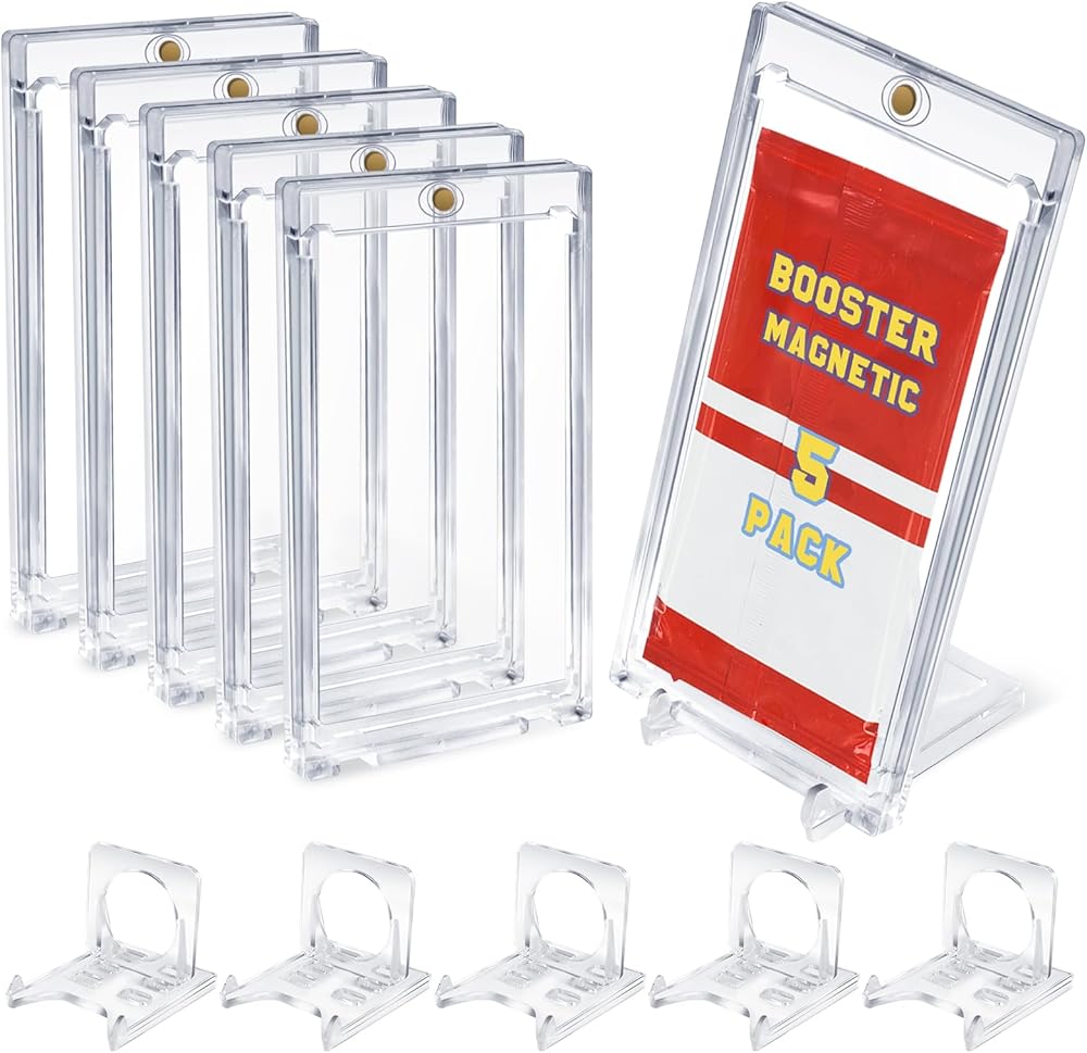 Lightweight And Portable: A single Booster Pack Display Holder weighs only 2.89 ounces, and a magnetic card holder set contains 10 booster pack protector box, which take up little space when stacked for storage, and can be placed in display cases, storage boxes or carried to card events, making it easy to exchange or display with other collectors.