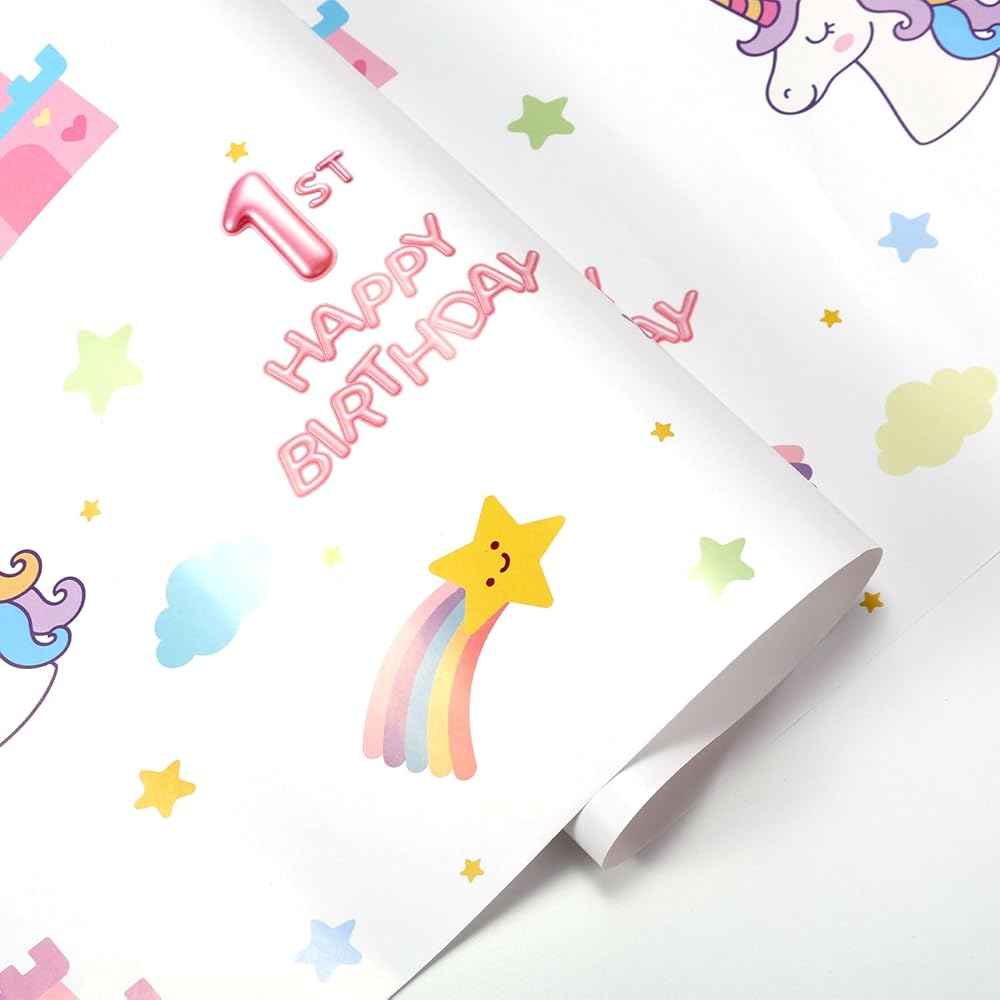Adorable Design: These birthday wrapping papers feature delicate celebratory elements and cute patterns with “Happy 1st Birthday” lettering. The girl-themed wrapping paper makes gifts extra special for first birthday parties, baby showers and celebrations.