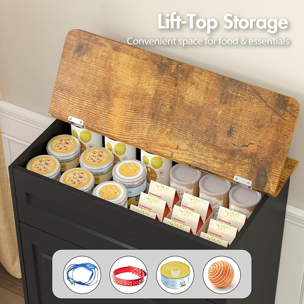 【Large Dog Food Storage Cabinet】Deep pull-out drawer with divider stores dry dog food or treats separately. A practical pet storage organizer that keeps food fresh, tidy, and always within reach.