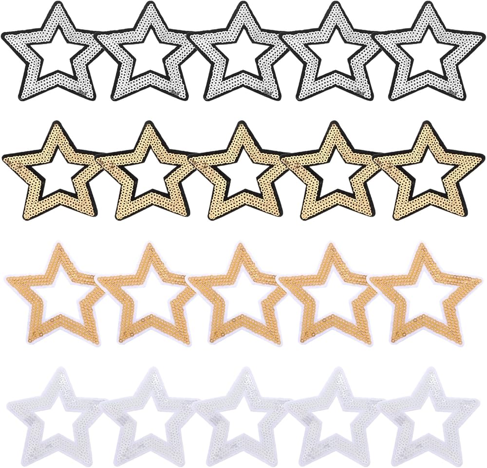 20pcs Hollow Star Iron on Patches Embroidered Decorative Sequin Shiny Star Sew on Patches Applique Repair Patch DIY Crafts for Clothing Jeans Pants Dress Backpack Hat