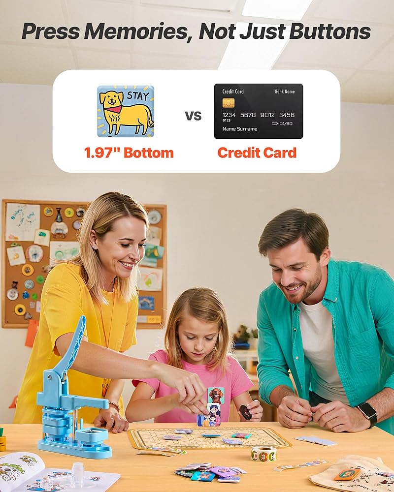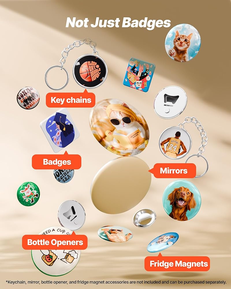Make Personalized Gifts: Design custom badges for any occasion. Our button making machine also works with mirrors, keychains, bottle openers, and magnets—turn your creativity into one-of-a-kind, heartfelt keepsakes