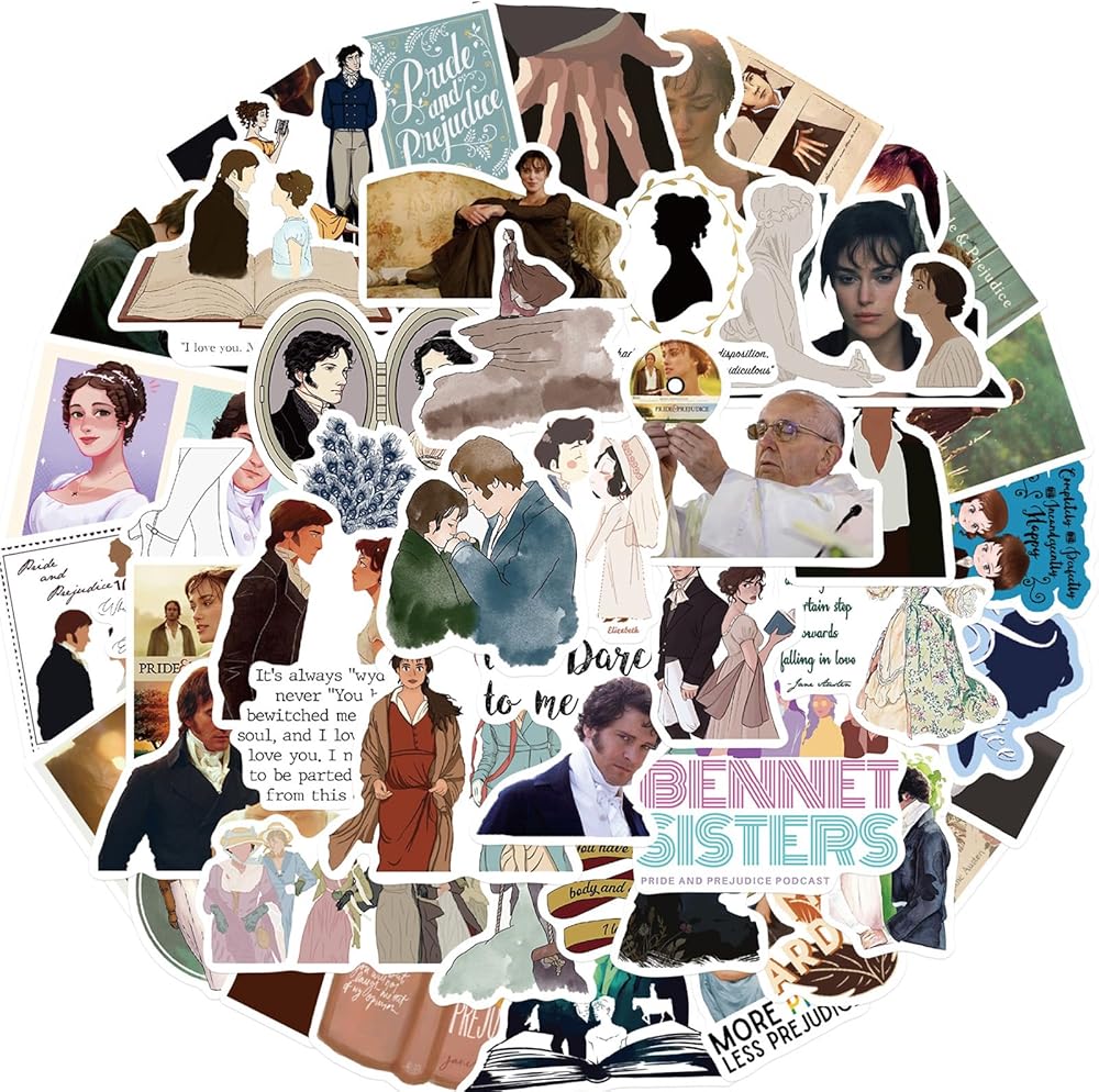 50Pcs Pride and Prejudice Stickers, Classic Novel Waterproof Sticker for Teen Adult Water Bottle, Laptop, Skateboard, Bike, Phone, Computer, Travel Case (Pride and Prejudice)