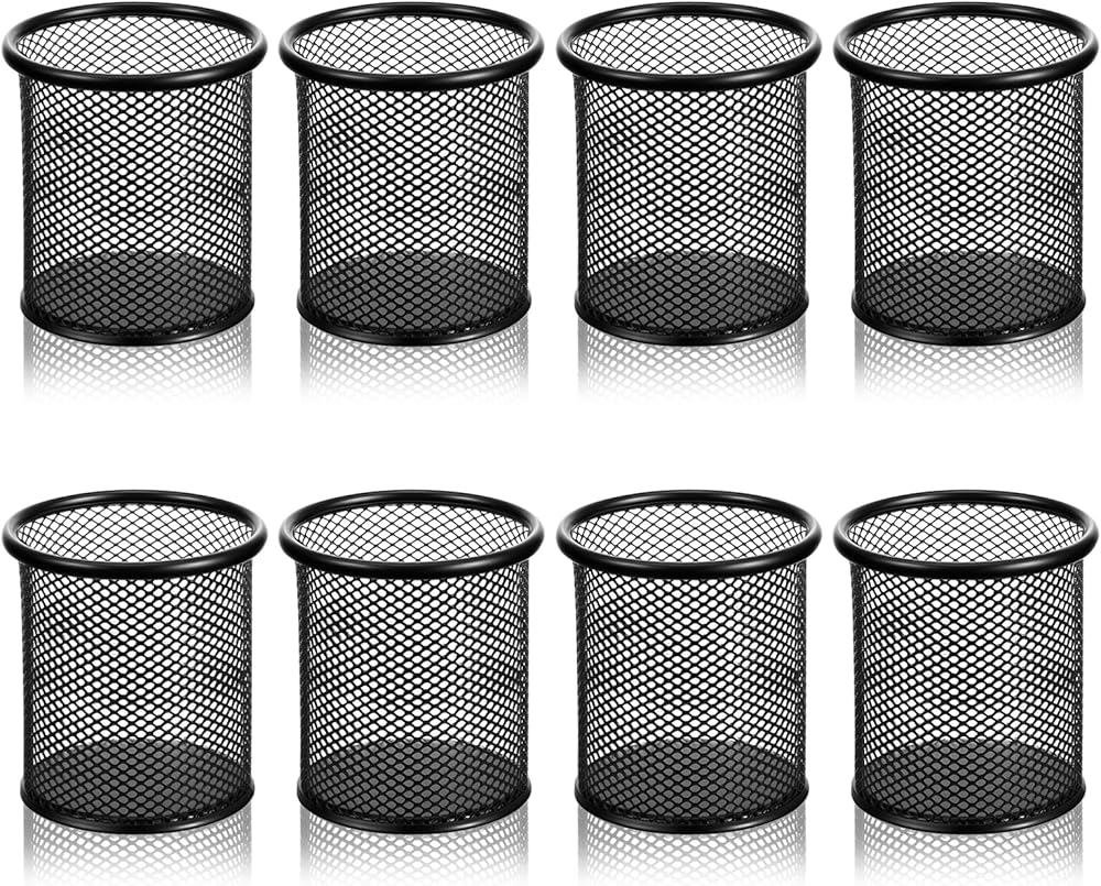 8 Pack Pencil Cups Mesh Pencil Holder Metal Pen Holder for Desk, Small Desktop Pen Cup Holders Desk Accessories & Workspace Organizers for Home, Office, Black 3.8’’ Tall