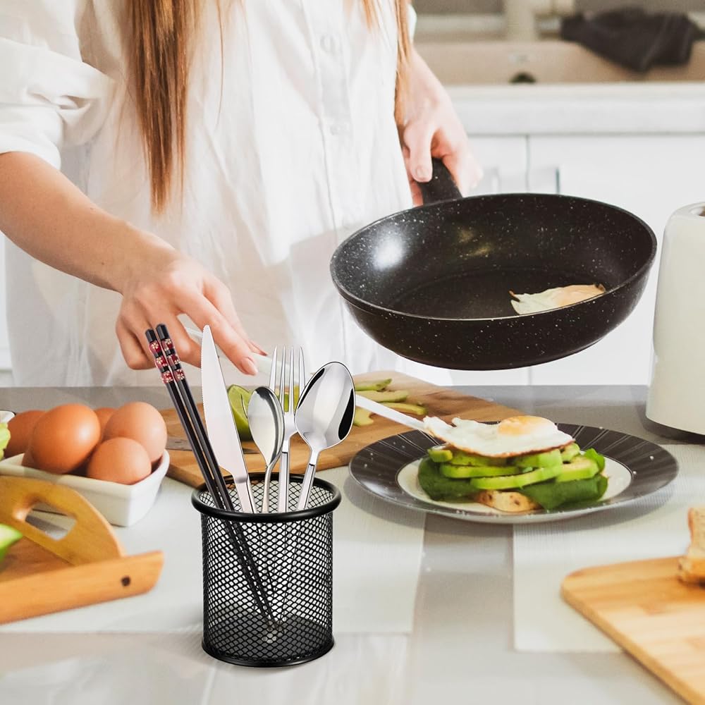 Fade-Resistant Mesh: The black-coated iron resists rust and deformation, even in humid environments. Unlike plastic holders, the metal mesh pencil holder retains shape under heavy loads (e.g., 50 pencils) for long-term use.