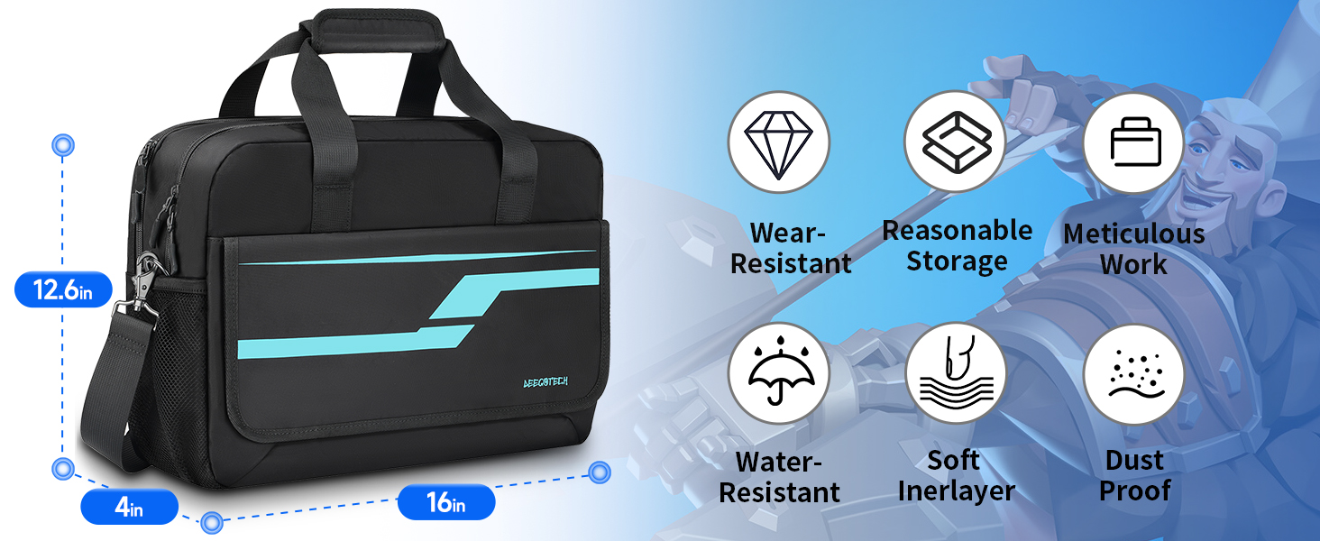 [EASY to CARRY] - The dimension of this travel case for playstation 5 is:16" * 3.9" * 12.6"and weight is1.7ib. Easy to carry and space saving.Besides,There are two convenient ways to travel- hand and shoulder. It allows you to easily bring the game devices to travel gatherings or vacation venues, and enjoy the fun of gaming with ease