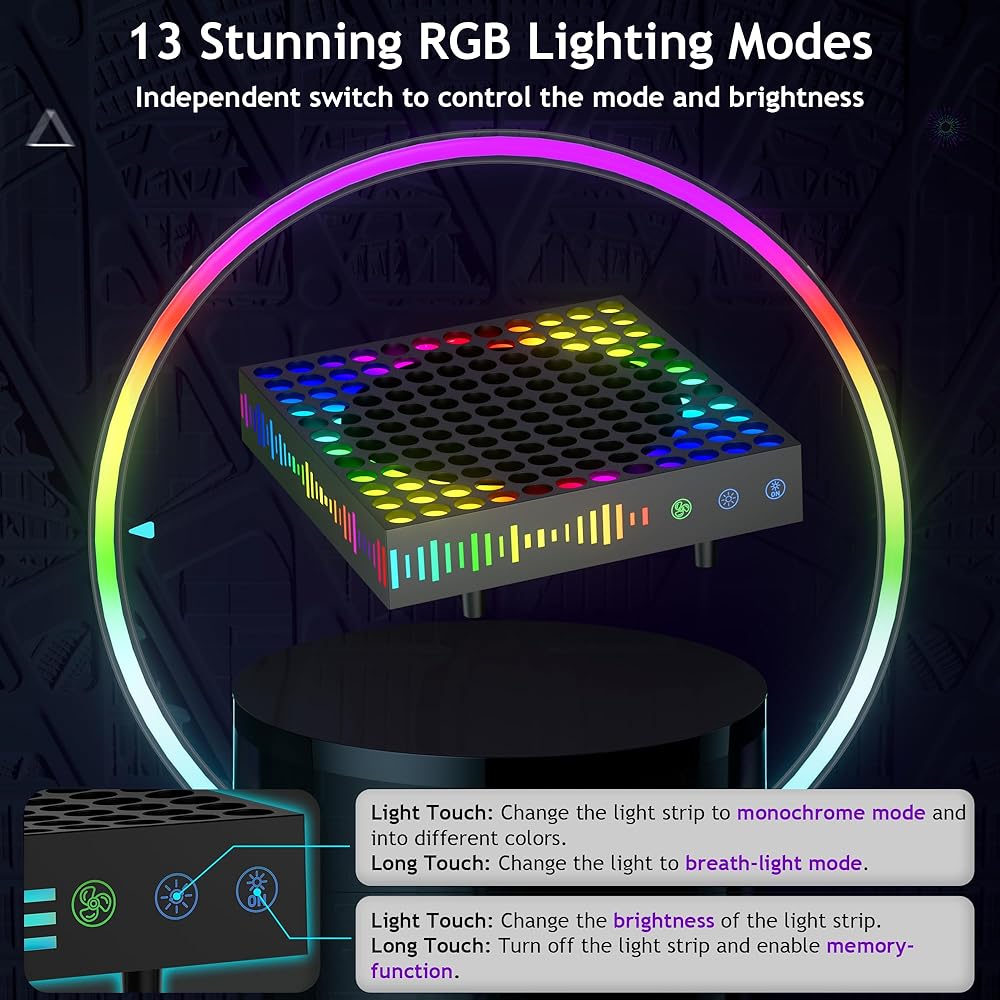 【13 RGB Light Modes】This top dust proof cooling fan for Xbox Series X has 13 RGB light modes, including 7 static modes and 6 dynamic modes (1 breathing modes, 2 marquee modes and 3 rainbow light modes), you can change the light by touching the button on this cooling fan. And it also has a special memory function: the light when it is turned on next time is the light effect before it was turned off last time. This RGB cooling fan for Xbox Series X will customize a cool gaming experience for you.