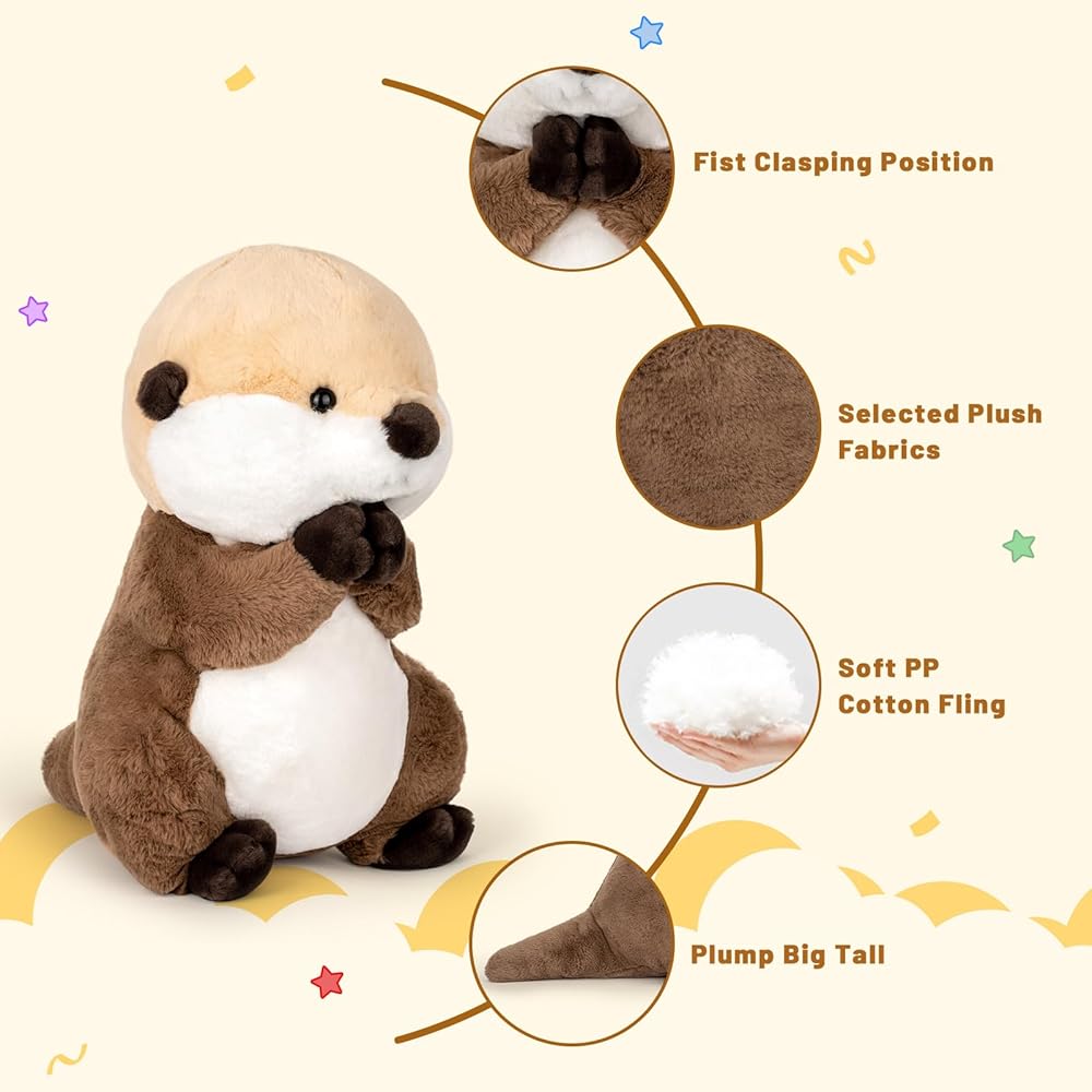 🦦ORIGINAL DESIGN🦦: This big otter body is uniquely designed, different from other otter plush toys. This otter puts his hands together and worships, which restores the real living habits of the animal and makes it look even cuter. Our otter plush is super soft, he has a round head and a soft body.