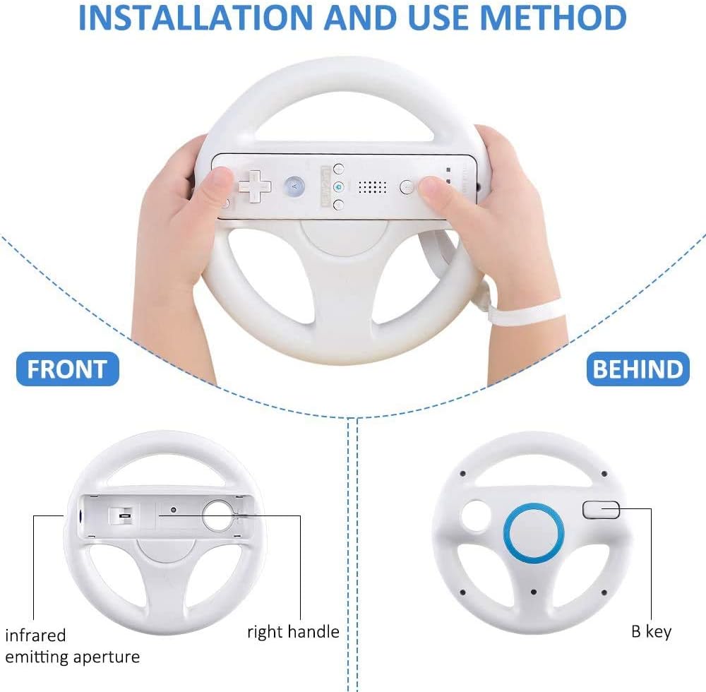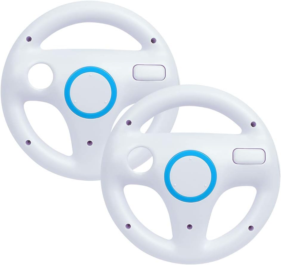 AMAZECO White Mario Kart Racing Wheel for Wii Remote Games, Pack of 2