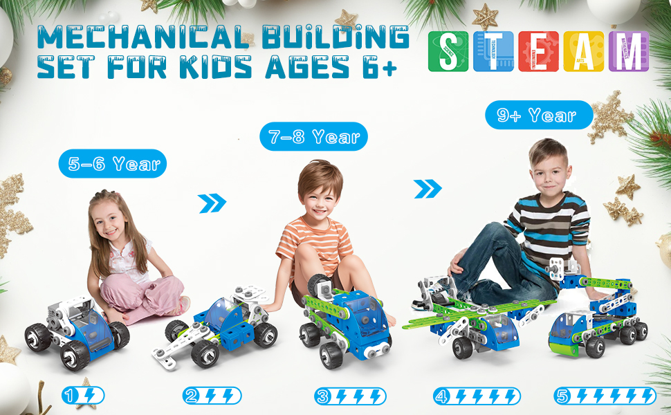 STEM Building Toys for Kids Ages 4-8, 175 Pcs Educational Construction Kit, Building Blocks Set, 18 in 1 Creative Engineering Pull Back Cars, Birthday Gift for Boys & Girls 4 5 6 7 8 9 10 Year Old