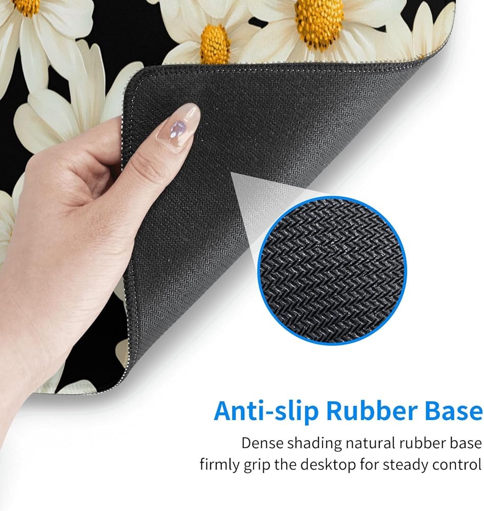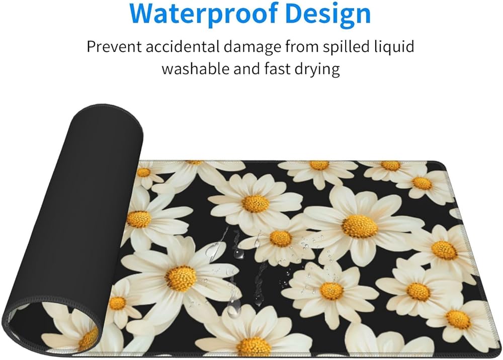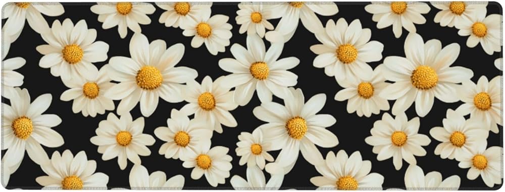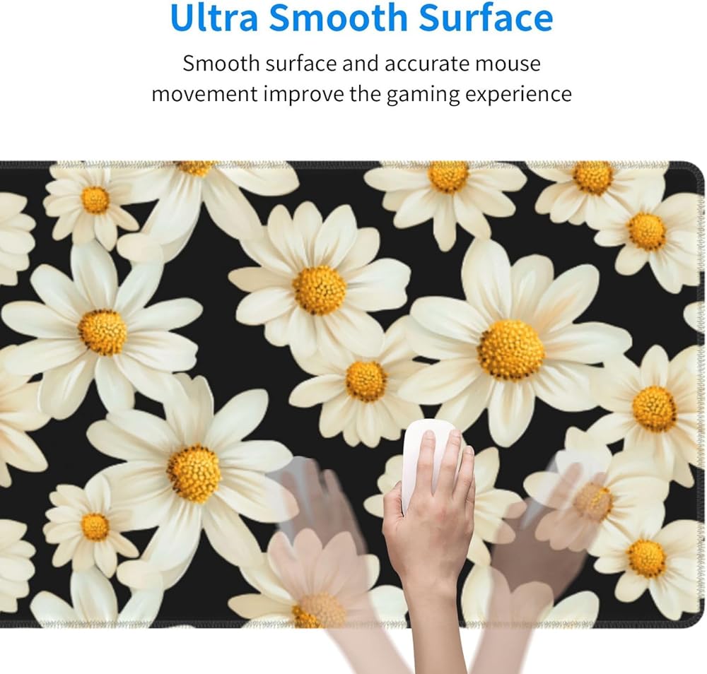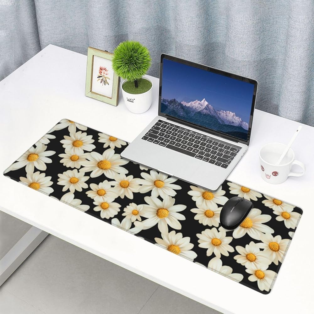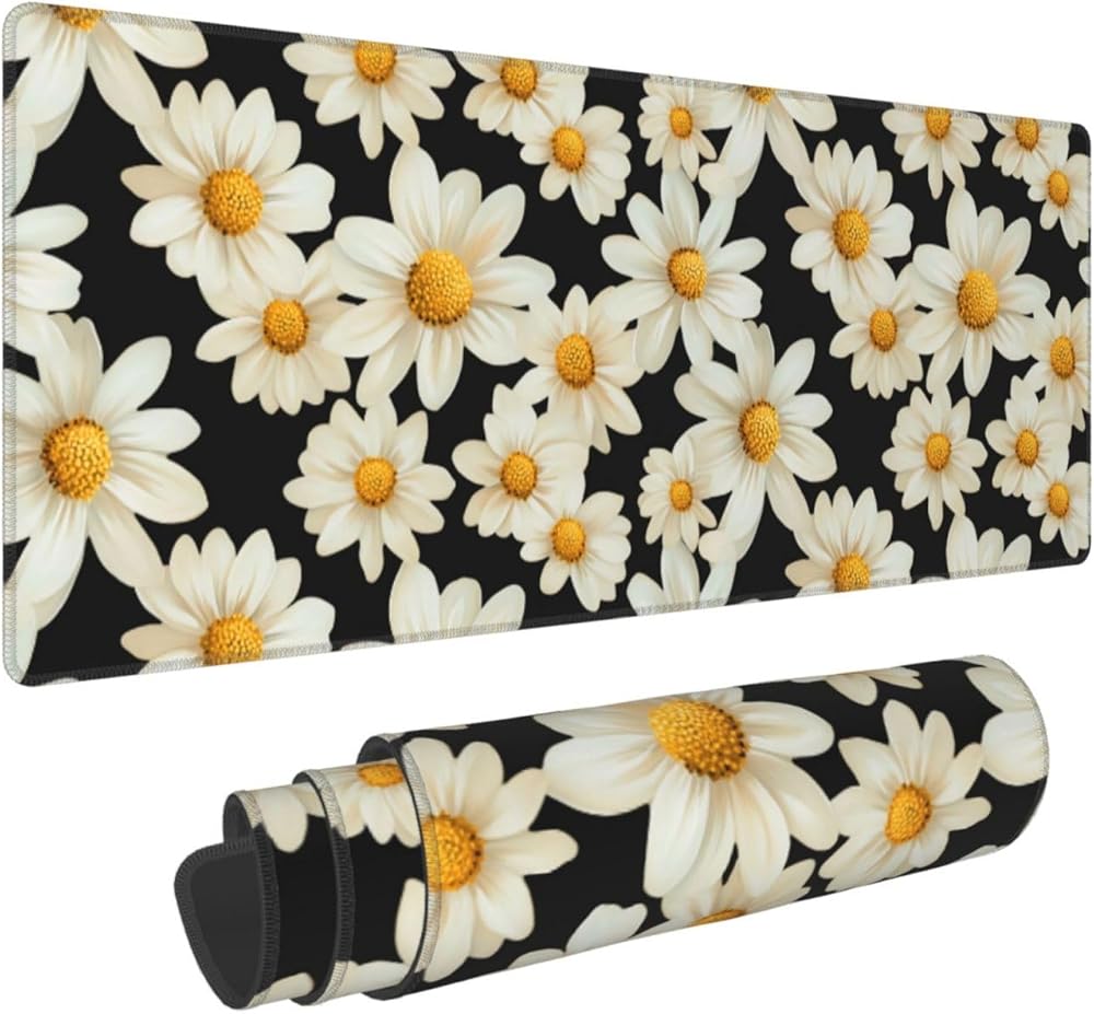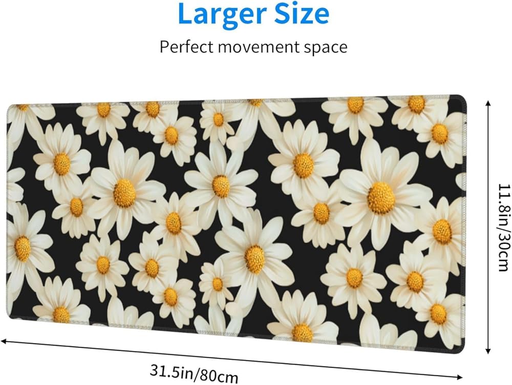 White Daisy Gaming Mouse Pad, Large Non-Slip Rubber Base Mousepad XL 31.5x11.8in, Keyboard Mouse Mat, Desk Pad with Stitched Edges for Gamer Home&Office