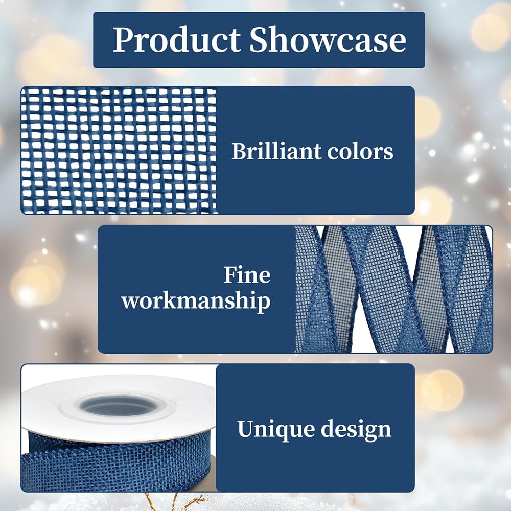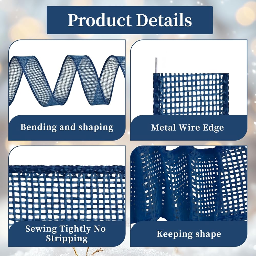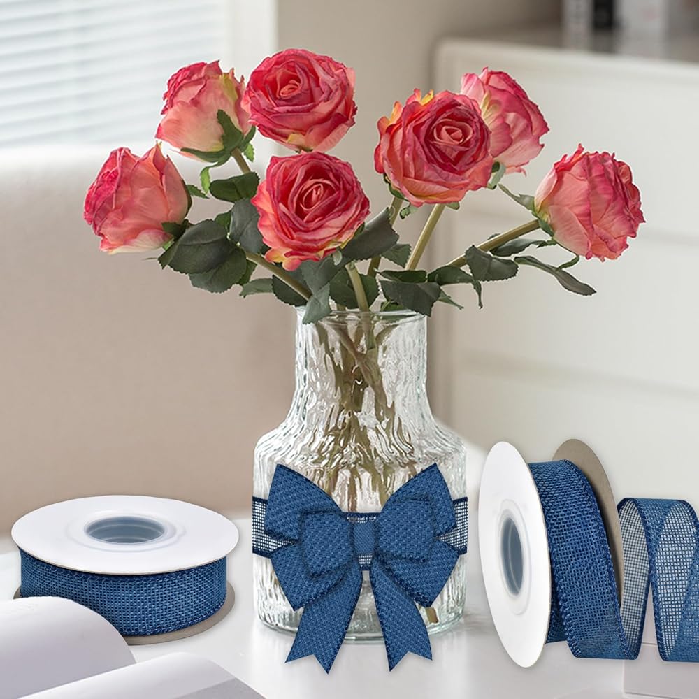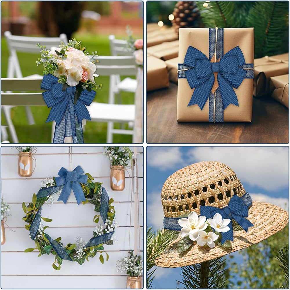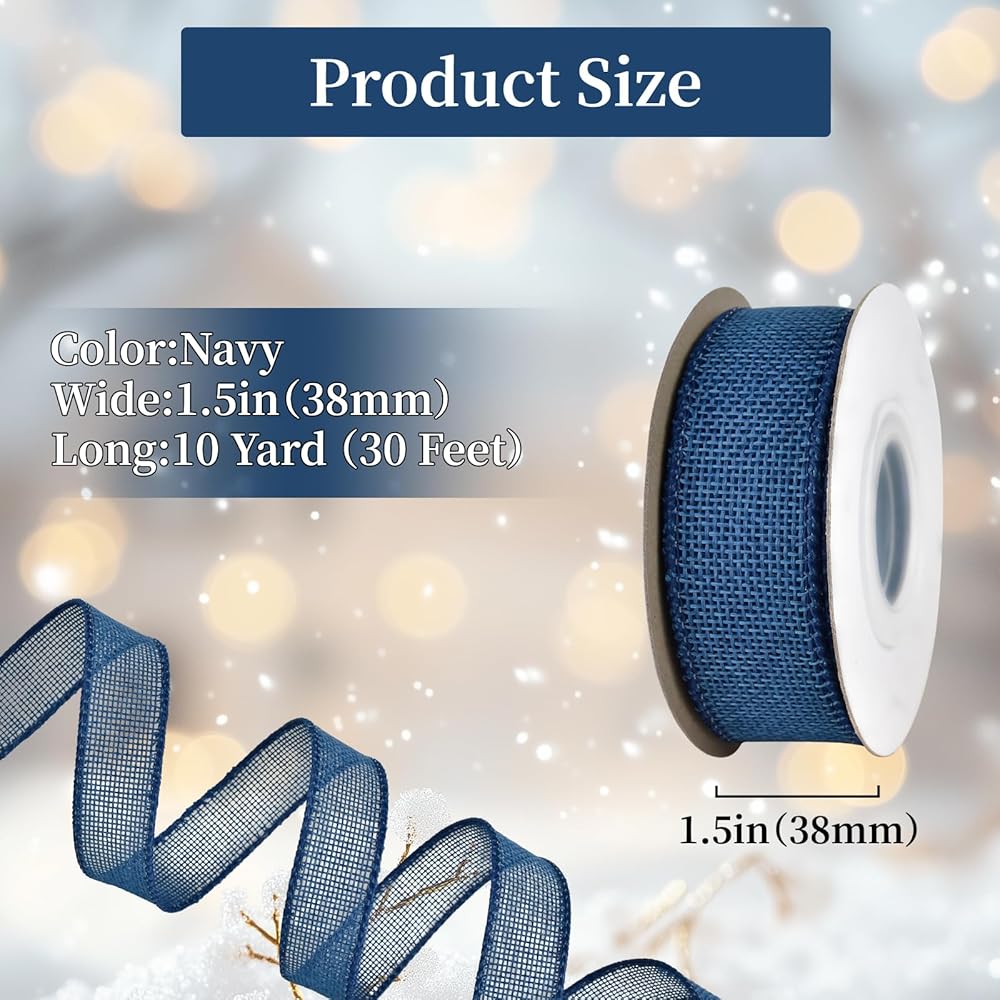 Package Includes: Burlap wired ribbons set includes 4 different colors: pink & gold & green & light blue.1 1/2 inch wide ribbon, 5 yards each roll by the spool, total 20 yards in a pack.