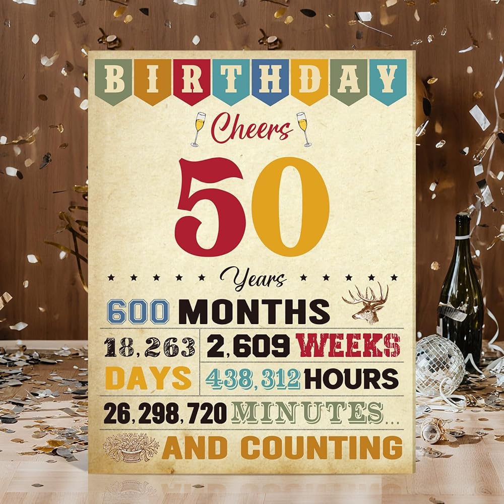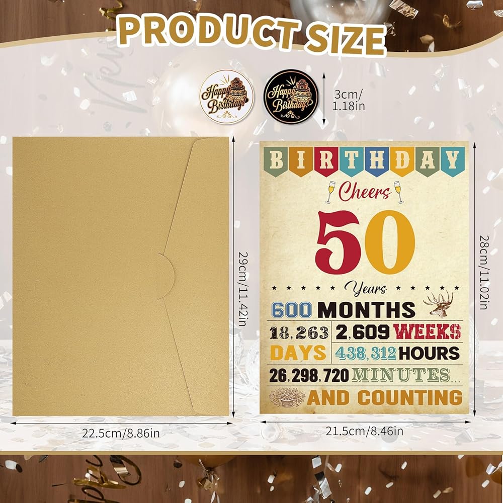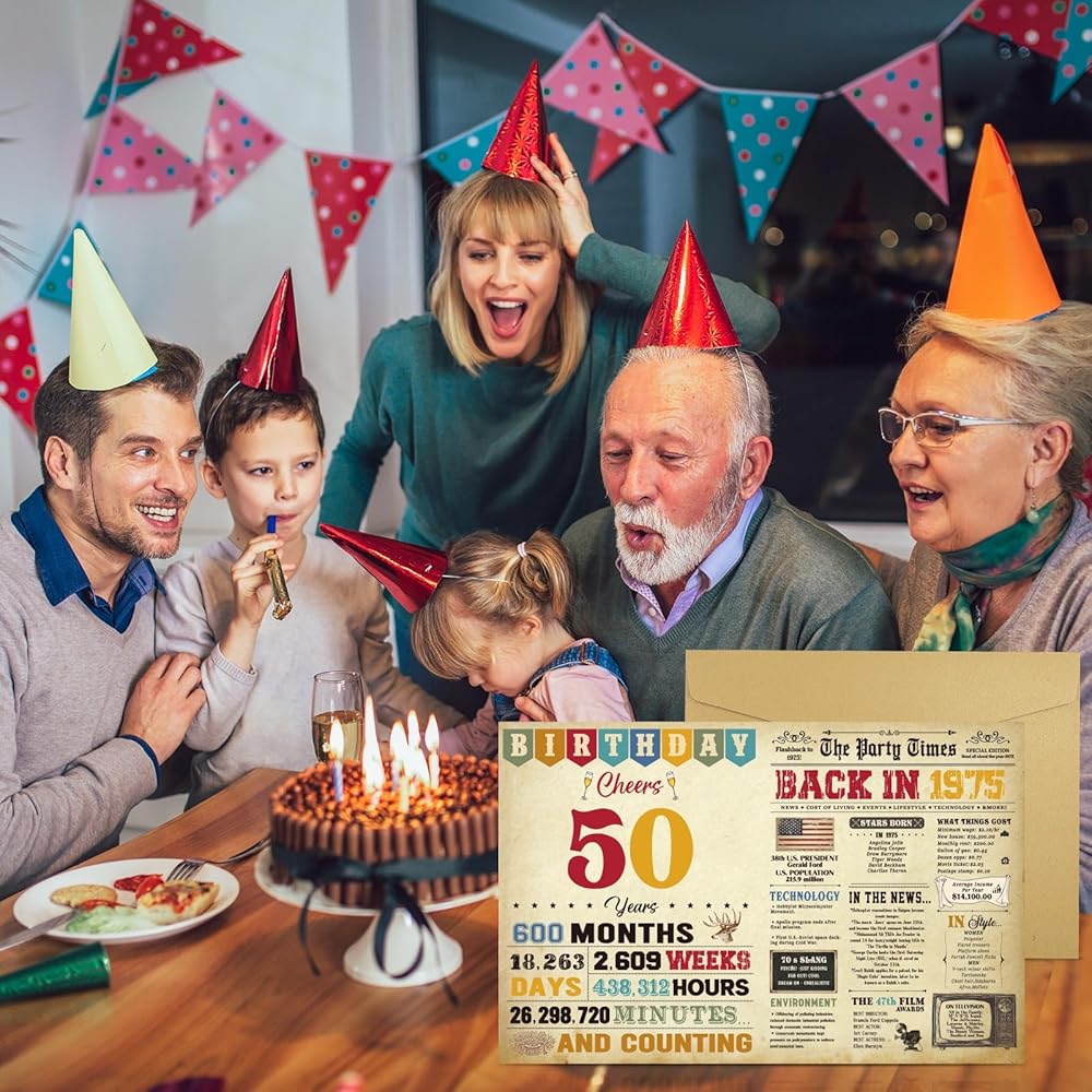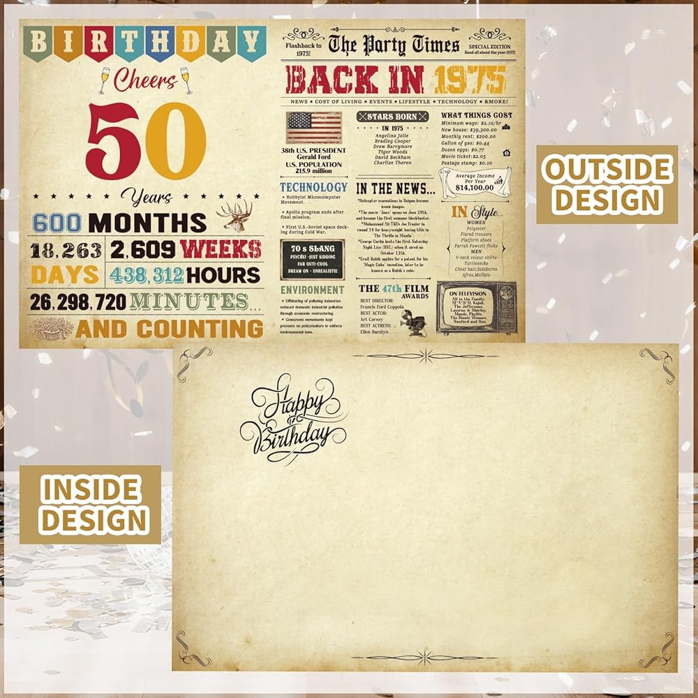 Thboxes 50th Birthday Card for Women Men, Happy Funny 50th Birthday Decoration for Her Him, Back In 1975 Retro 50 Year Old Birthday Gifts Card for Mom Dad, Classy Vintage, 21.5 * 28 CM