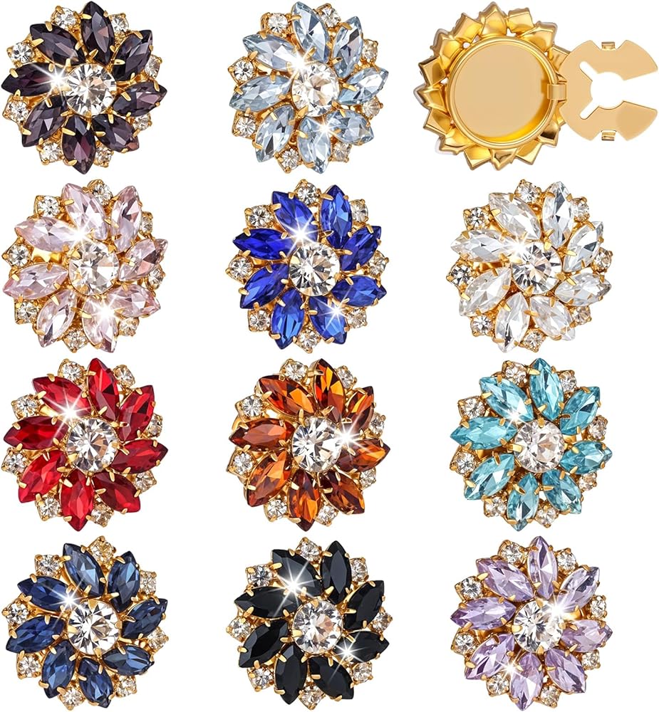 Enhance your wardrobe with our exquisite rhinestone button covers, designed specifically for women blouses. These button covers are crafted from high-quality stainless steel and dazzling rhinestones, offering a luxurious touch to any outfit. With a variety of colors including light purple, navy blue, black, lake blue, white, AB, royal blue, light pink, light blue, dark coffee, deep purple, and gold, you can effortlessly match them with your clothing.
