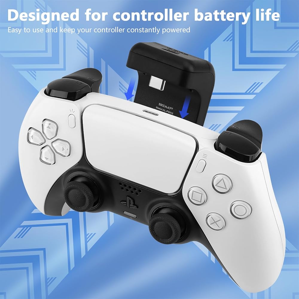 SIKEMAY PS5 Controller Accessories Rechargeable Battery Pack, 1800mAh Fast Charging External Battery with LED Indicator and USB Type-C Charger Cable, Portable Wireless DualSense Kit