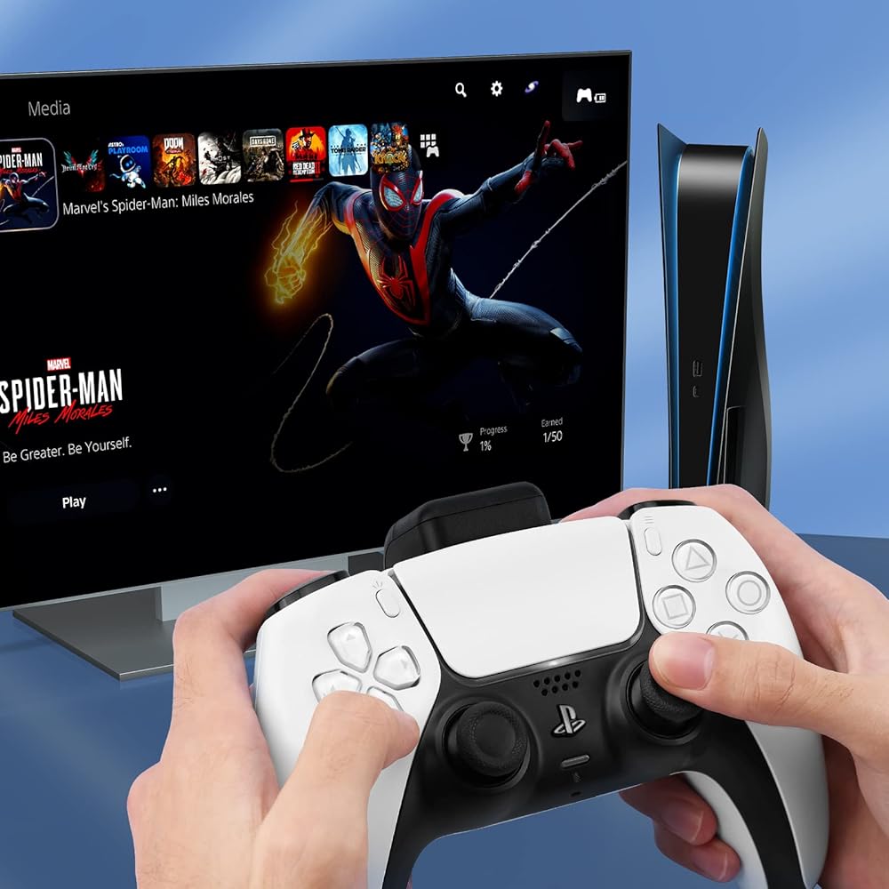 ⚡【Charging Indicator】 When the ps5 controller charger is charging the controller, the stylishly designed LED indicator will clearly show the remaining battery power. In addition, when you charge the battery pack alone, the under-charged capacity bar will flash. Therefore, you can easily determine when the battery pack needs to be charged. This is one of the necessary accessories for your controller!