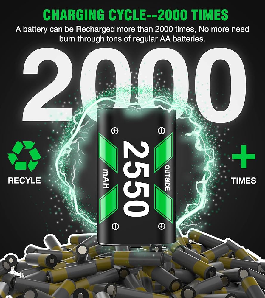 【Long Battery Life for Xbox One Rechargeable Battery Pack】 Come with 4pcs xbox one controller rechargeable battery pack that each can be recharged 2000 times, this xbox one battery pack rechargeable takes about 5 hours to fully charge at the same time, 4x Xbox series x battery that can easily grant you 80+ hours of playtime. You receive 4 rechargeable battery packs that ensure you are never left with an uncharged xbox one controller ever again