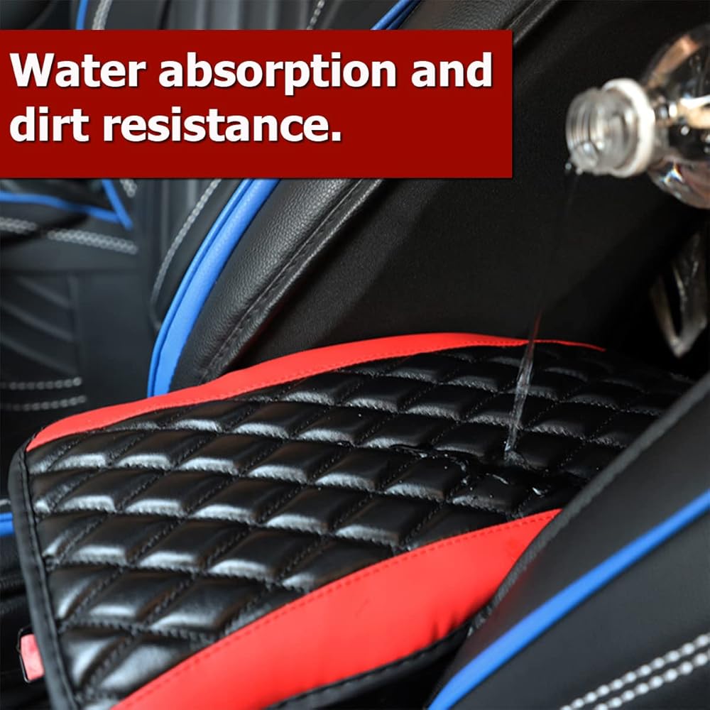 Car Center Console Cushion Pad, Universal Leather Waterproof Armrest Seat Box Cover Protector,Comfortable Car Decor Accessories Fit for Most Cars, Vehicles, SUVs (Red)