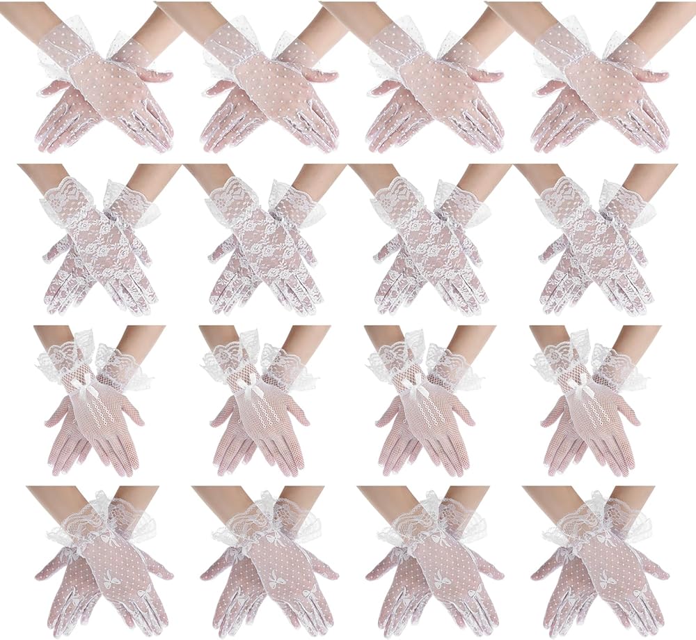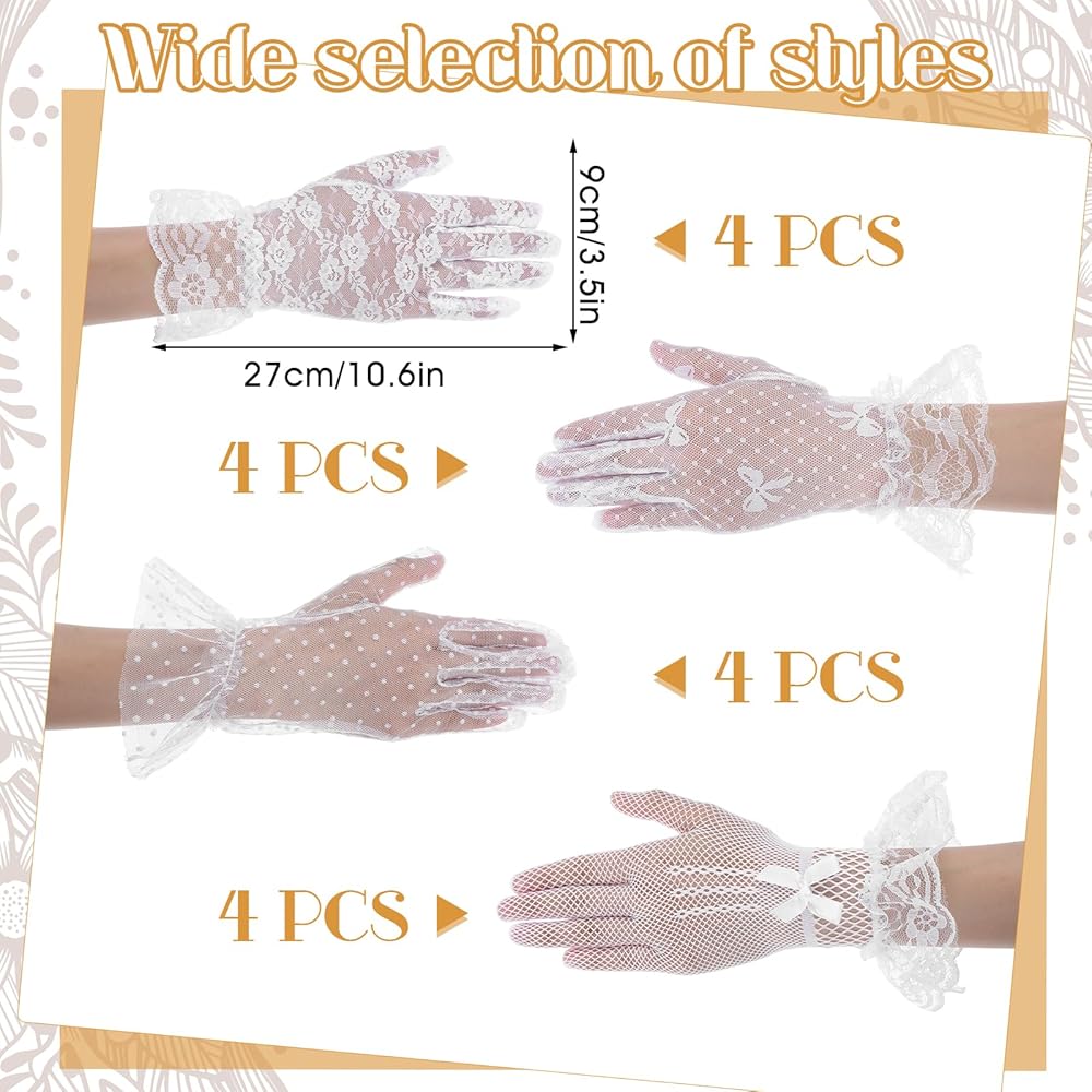 the lace gloves for women tea party are delicate and pretty, will complement a variety of different costumes, such as wedding dresses, banquet dresses, party dresses and more; The gloves have ruffled wrist designs, are more exquisite, and can add more femininity and cuteness