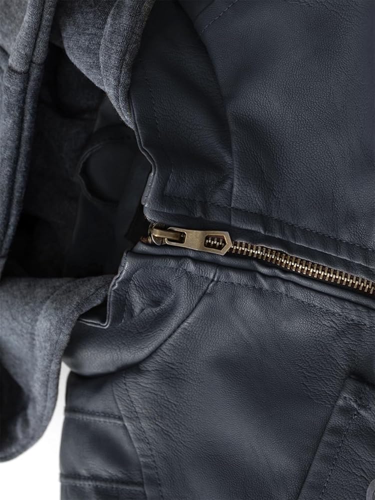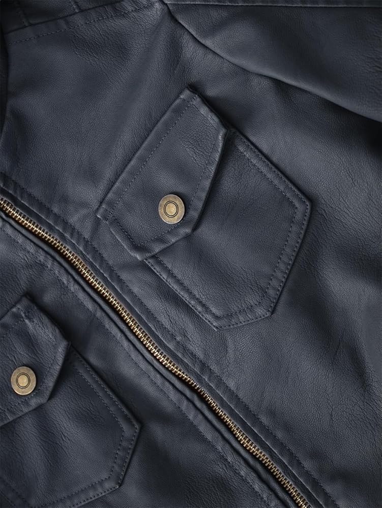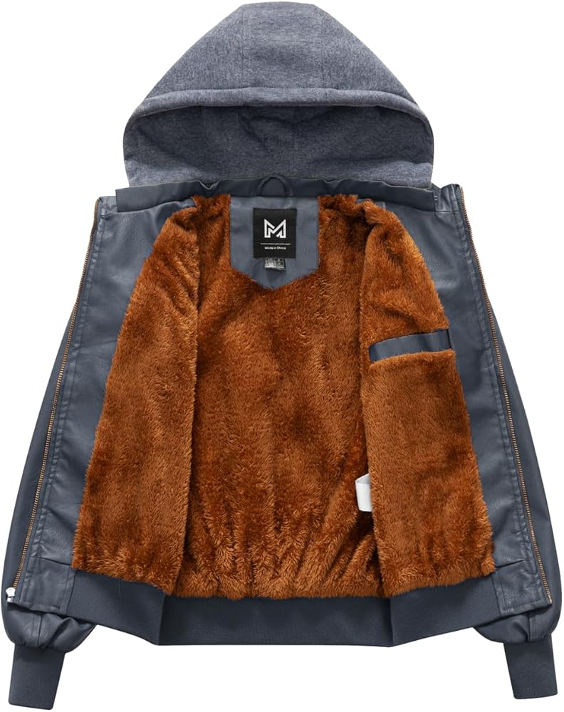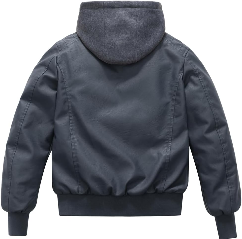 2 style design--Kids bomber leather jacket with removable Hooded design for different looks between stylish hooded riding jacket and casual stand collar Fall jacket.Full zip front closure, warm and convenient for kids