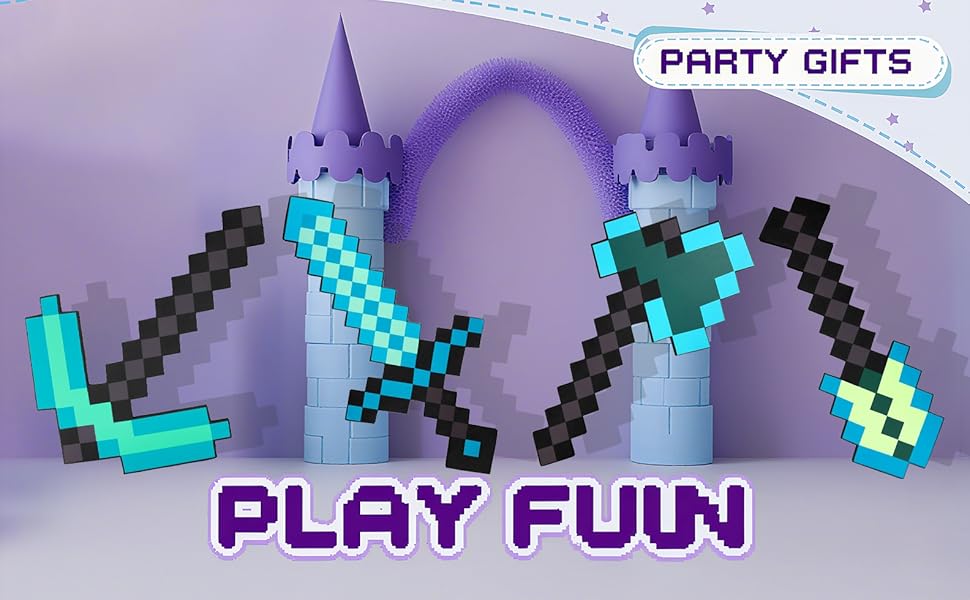 Perfect for imaginative play, enhance your role-play experience with our toy weapon set including sword, axe, pickaxe and shovel.